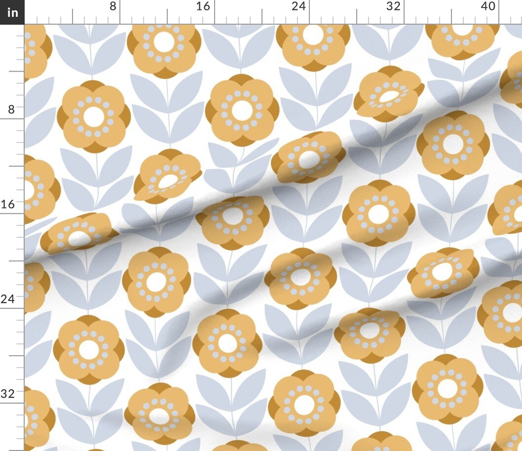 Mid Century Floral Scandi Poppies Retro Inspired Atomic Era 1950S 1960S Look Custom Printed Fabric by Spoonflower Various Fabrics by the Yard or Fat Quarter