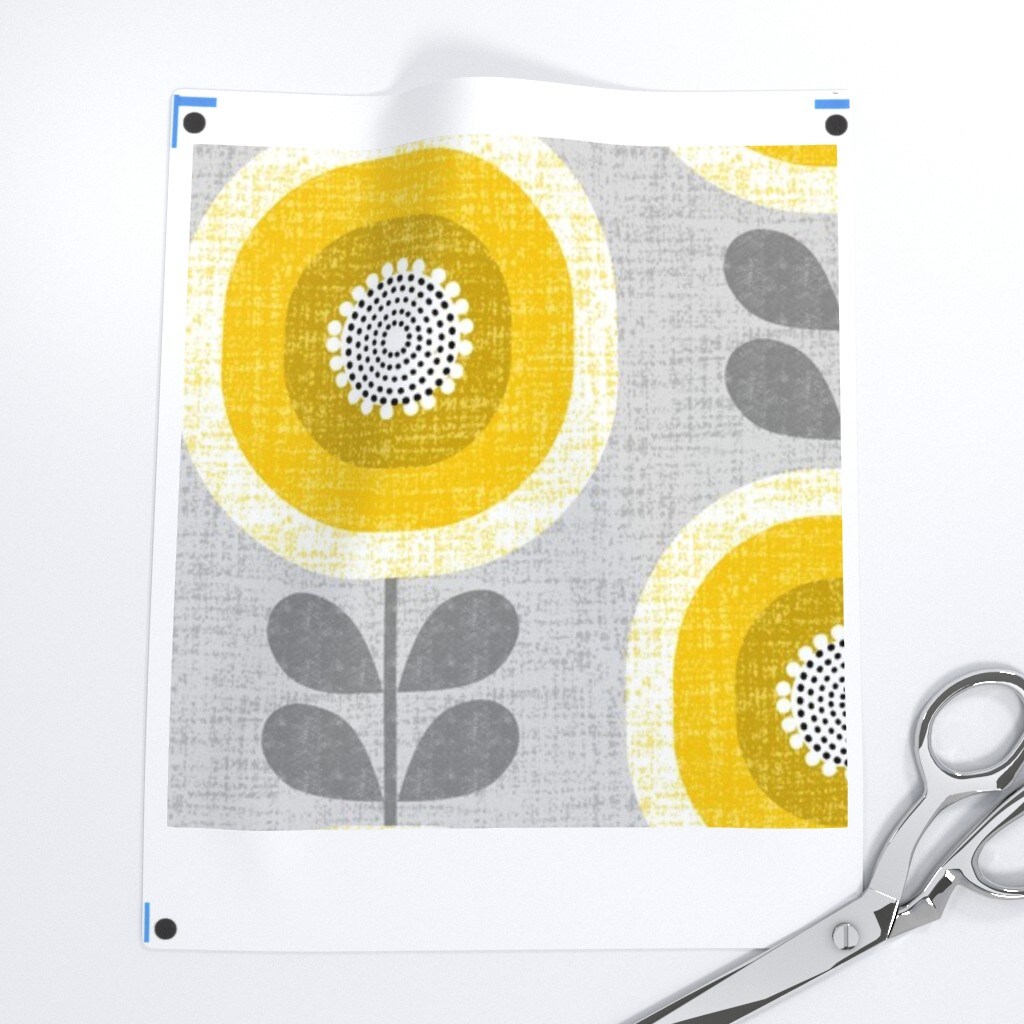 Mid Century Floral Scandi Style Faux Woven Texture Gray Yellow Sunflowers Custom Printed Fabric by Spoonflower Various Fabrics by the Yard or Fat Quarter