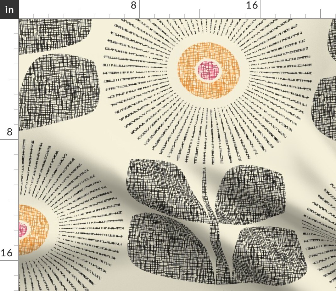 Mid Century Modern Retro Floral Large Scale Neutral Cream Custom Printed Fabric by Spoonflower Various Fabrics by the Yard or Fat Quarter