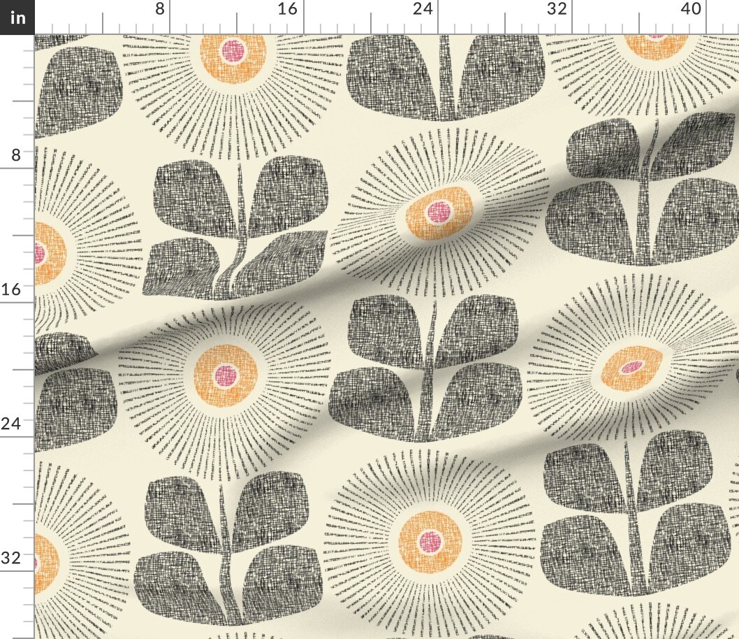 Mid Century Modern Retro Floral Large Scale Neutral Cream Custom Printed Fabric by Spoonflower Various Fabrics by the Yard or Fat Quarter