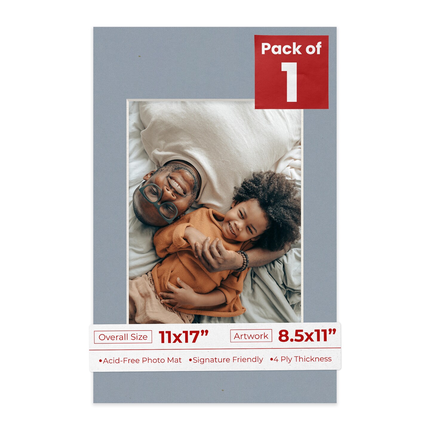 Mid Grey Mat Board for 11x17 Frames - Fits 8.5x11 Photos