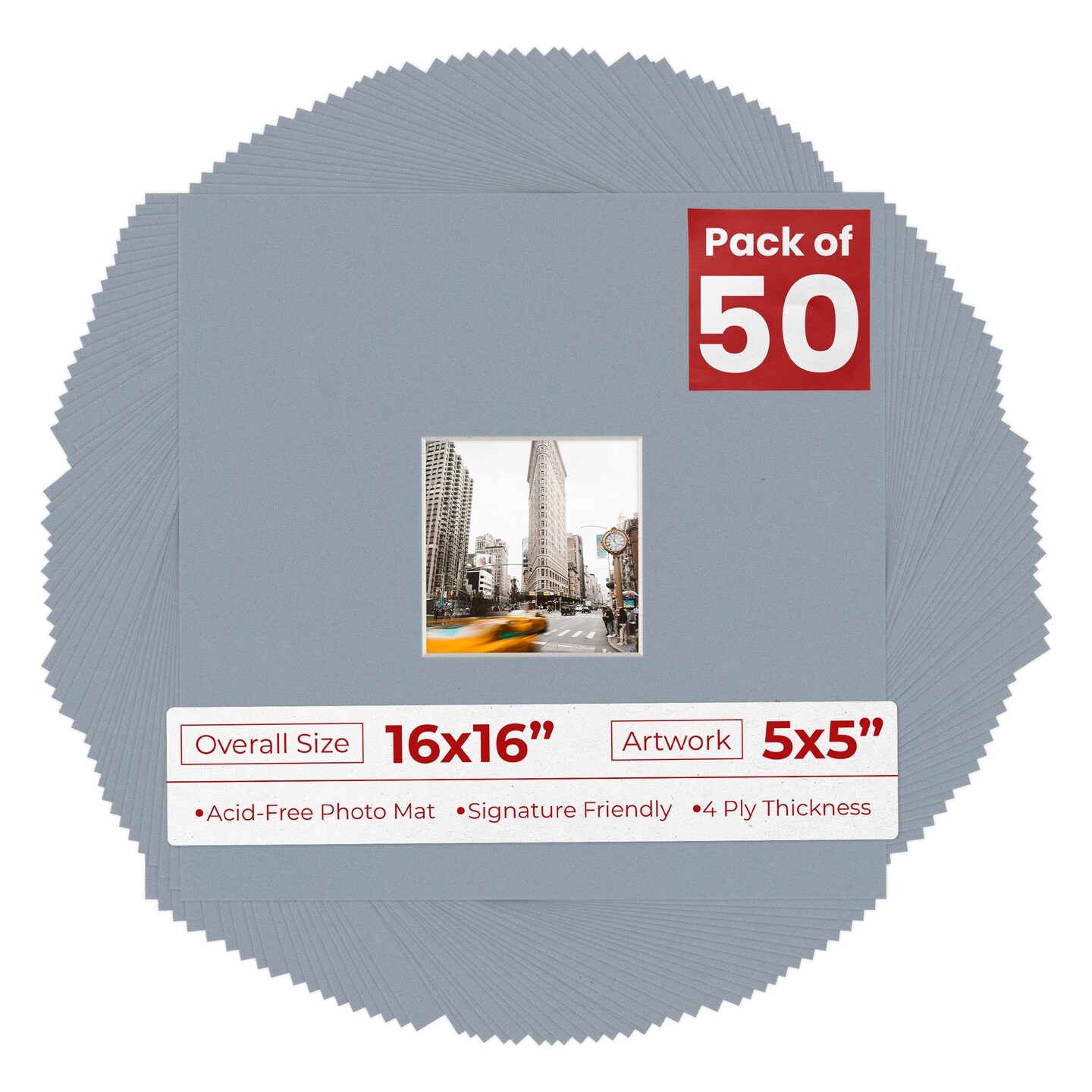 Mid Grey Mat Board for 16x16 Frames - Fits 5x5 Photos