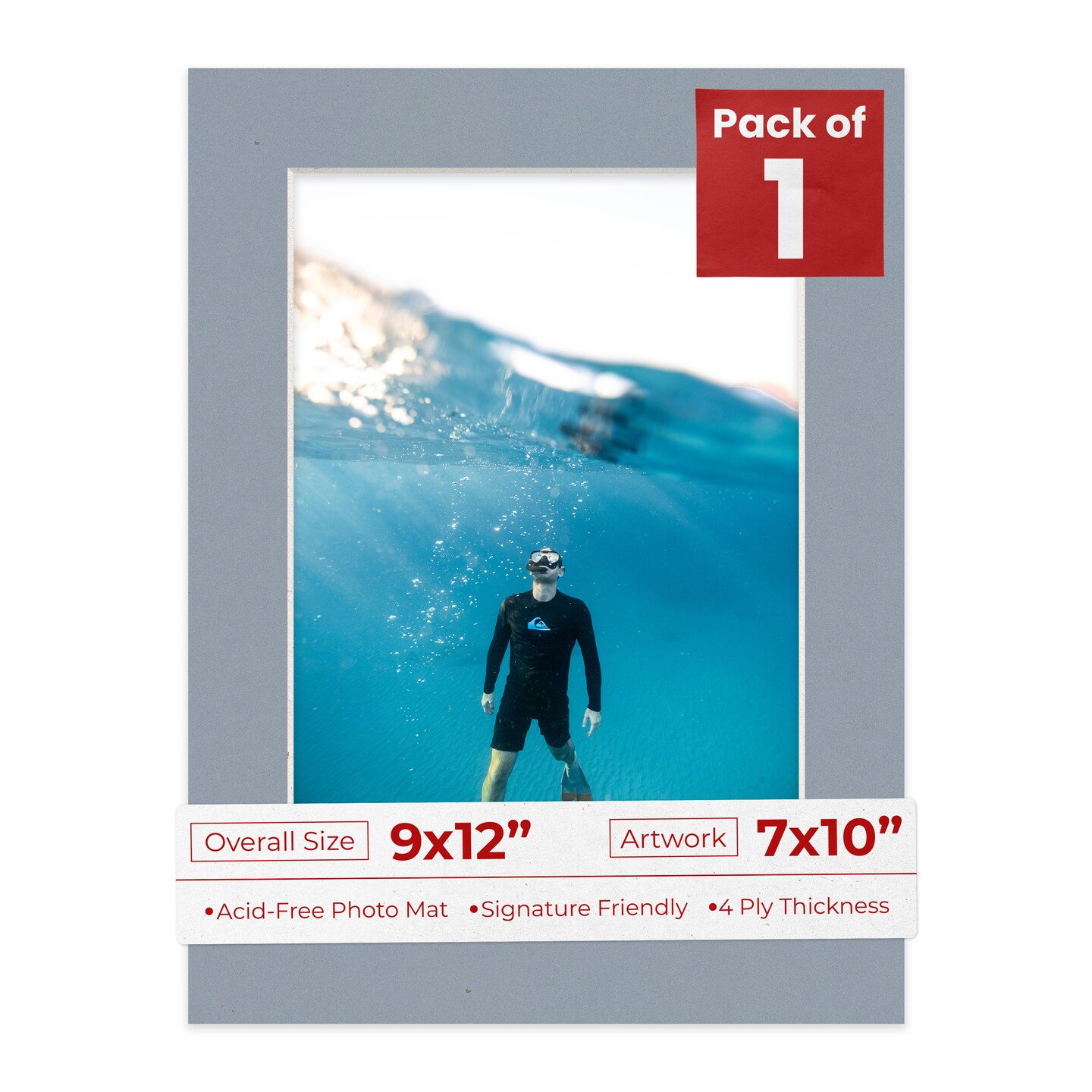 Mid Grey Mat Board for 9x12 Frames - Fits 7x10 Photos