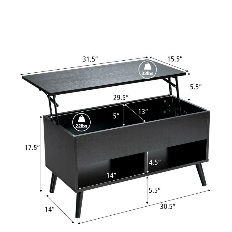Mid-Century Lift-Top Coffee Table Sofa Laptop Desk in Wood Finish
