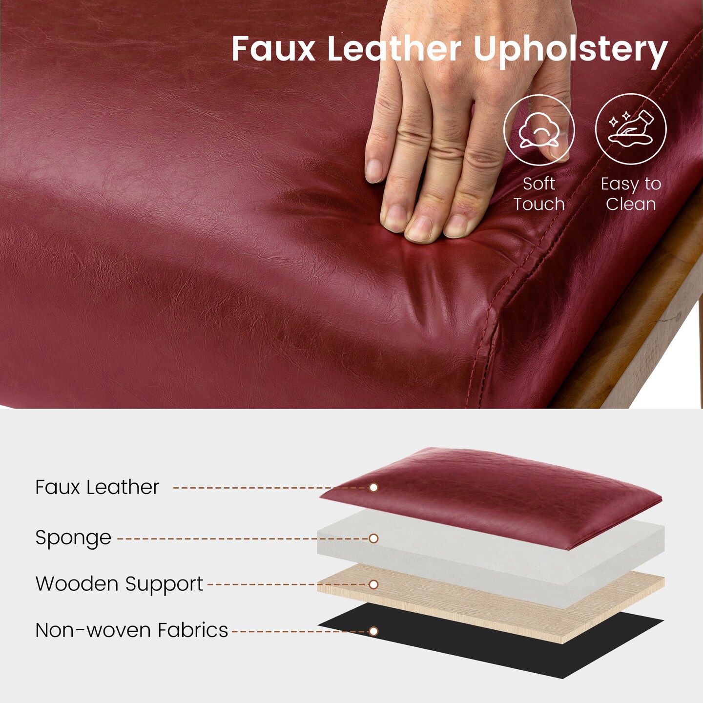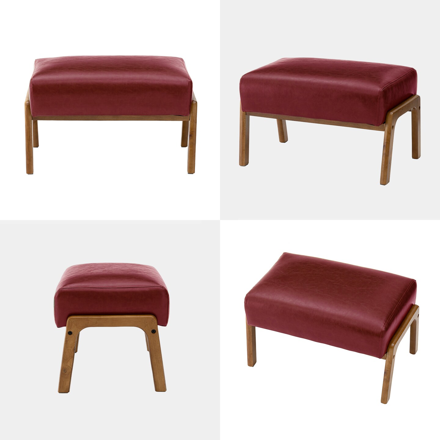 Mid-century Modern Leatherette Accent Stool with Walnut Rubberwood Legs