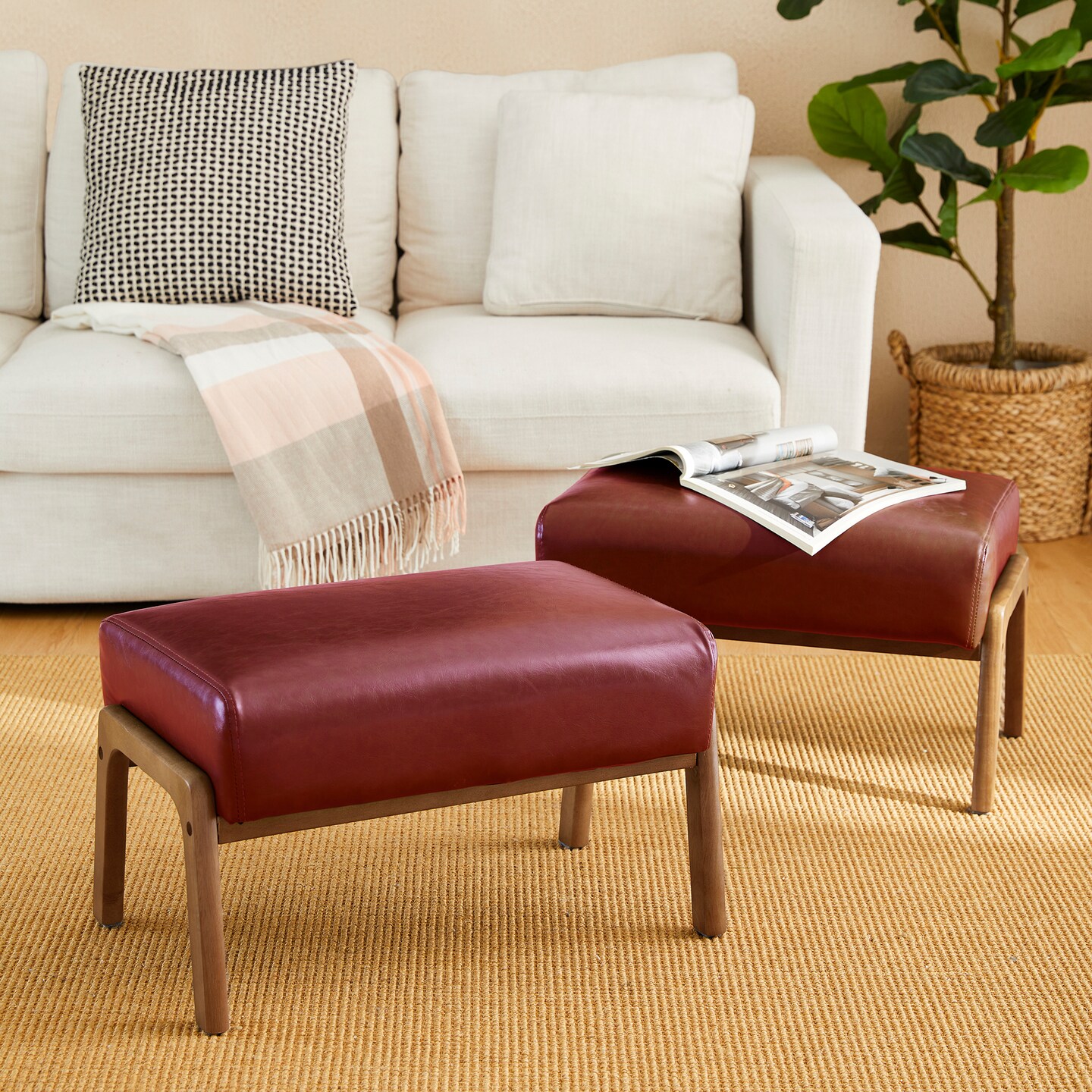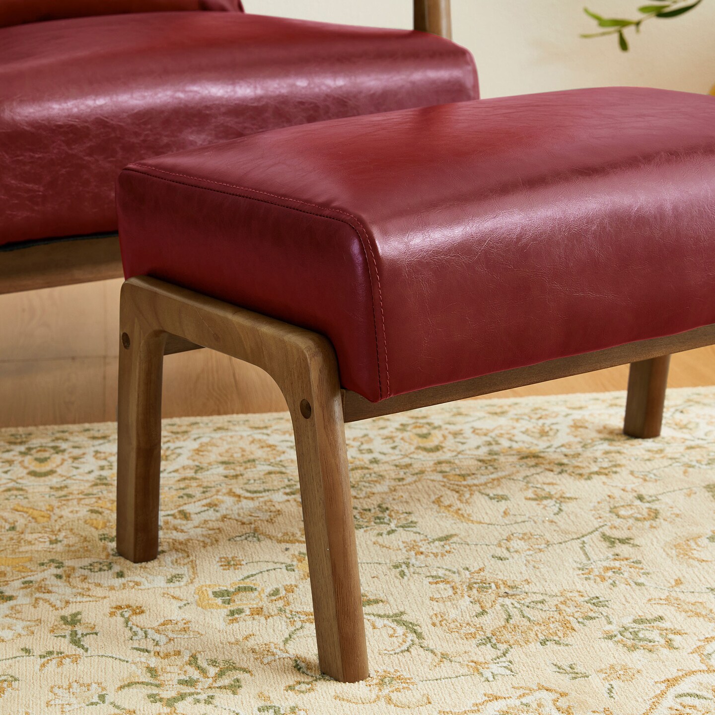 Mid-century Modern Leatherette Accent Stool with Walnut Rubberwood Legs