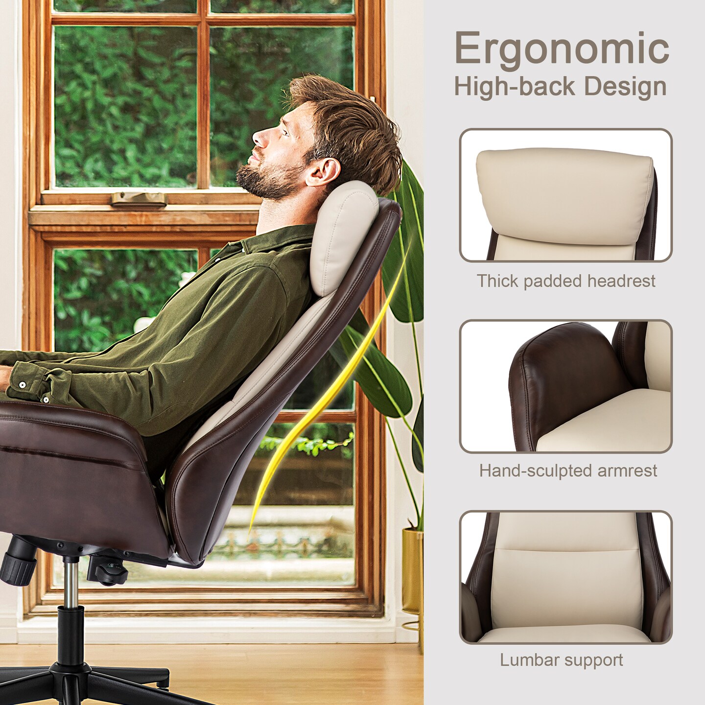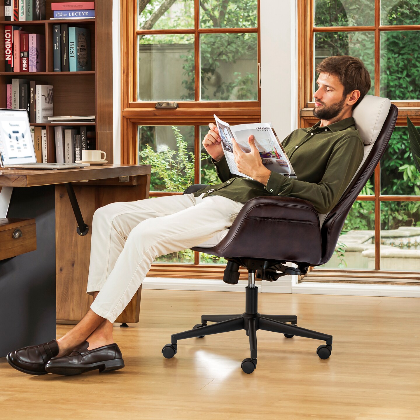 Mid-Century Modern Two-tone color Leatherette Adjustable Swivel High Back Office Chairs