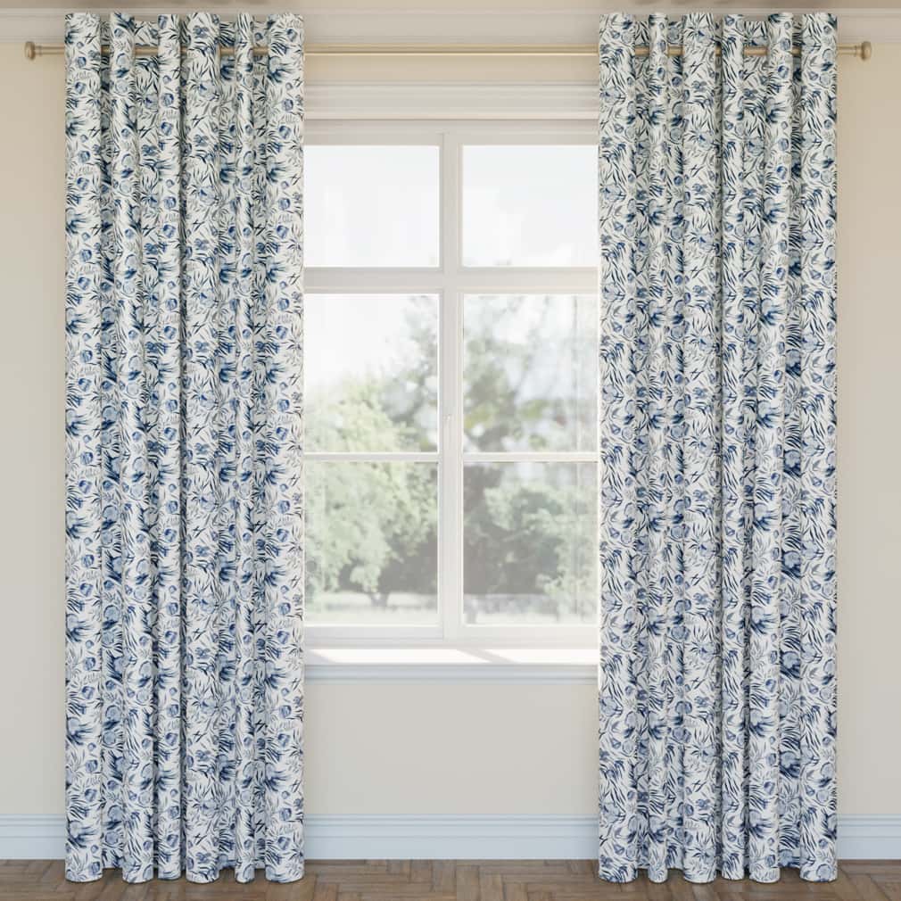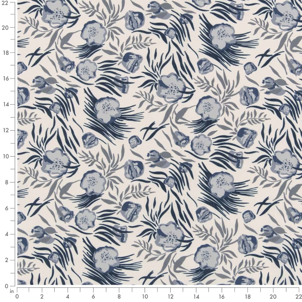 Midnight - Blue Floral Upholstery Fabric 54 Inches"