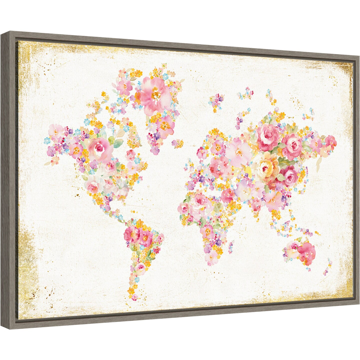 Midsummer World Map by Danhui Nai 23-in. W x 16-in. H. Canvas Wall Art Print Framed in Grey