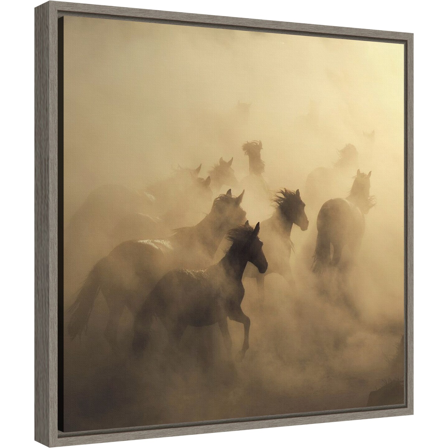 Migration of Horses by 1x 16-in. W x 16-in. H. Canvas Wall Art Print Framed in Grey