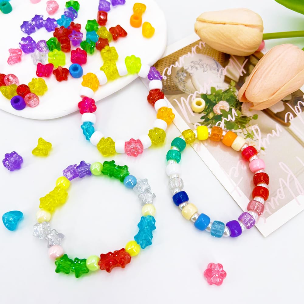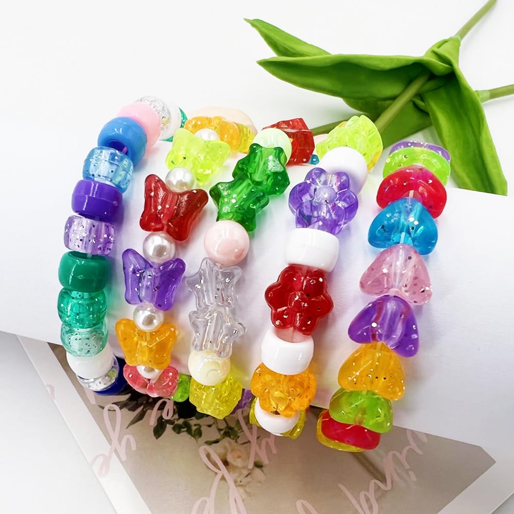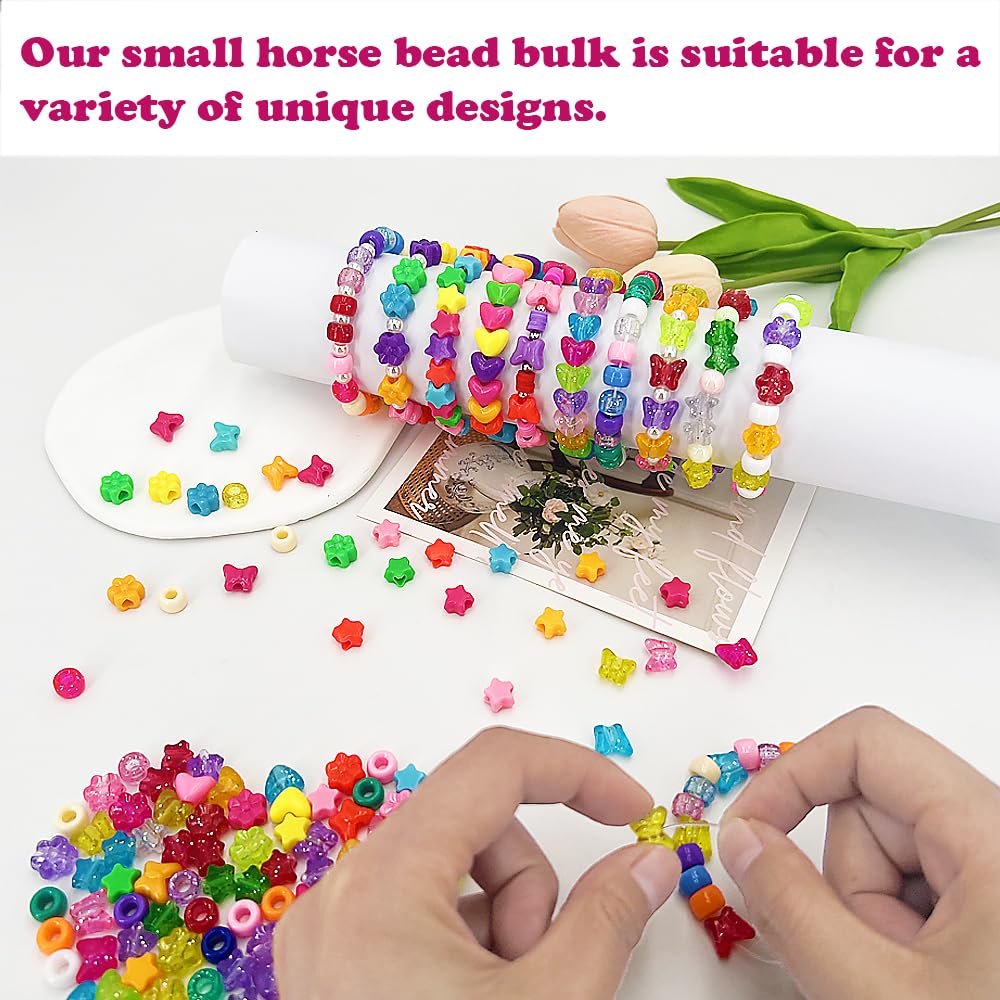 MIIIM 1000Pcs 6x9mm Pony Beads Shapes in 5 Styles 21 Colors, Heart, Star, Butterfly, Flower, Assorted Kandi Beads for Friendship Bracelet, Big Hole Hair Braids Crafts, Jewelry Making (Multi-Glitter)