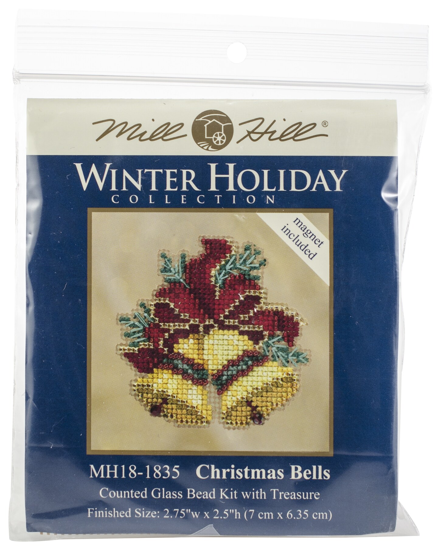 Mill Hill Counted Cross Stitch Ornament Kit 2.75"X2.5"-Christmas Bells-Perforated Paper