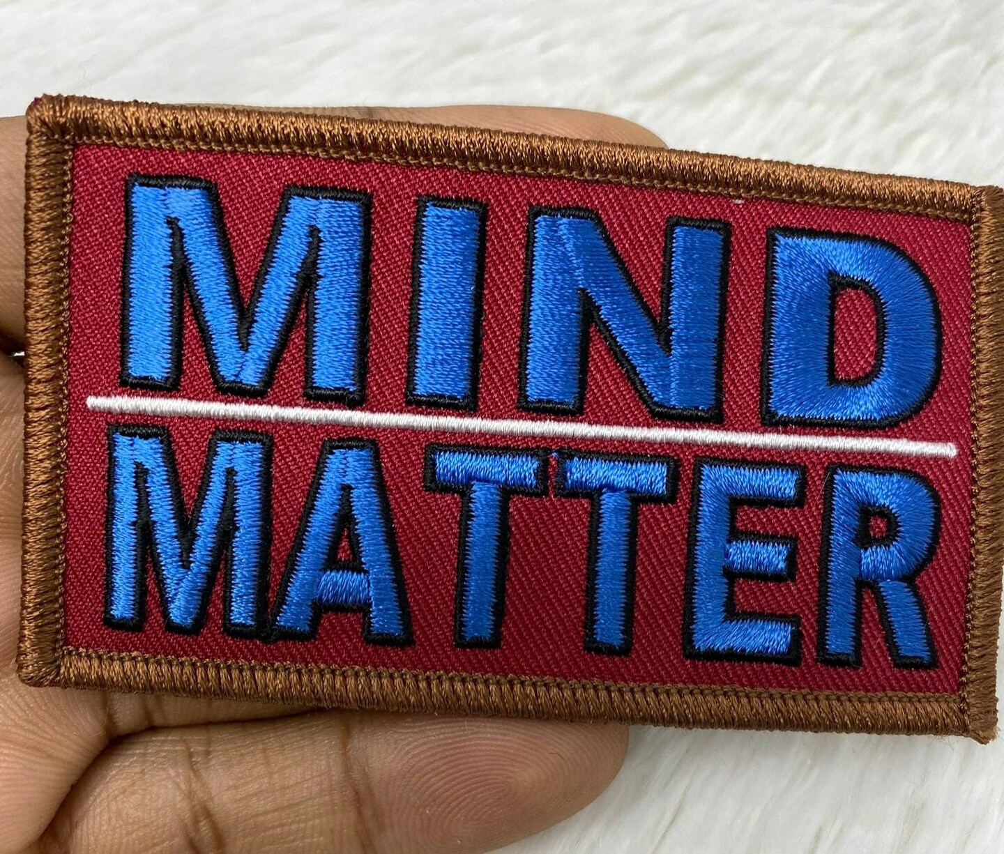 "Mind Over Matter" Iron-on Embroidered Patch, Statement Applique, size 4"x2" inches