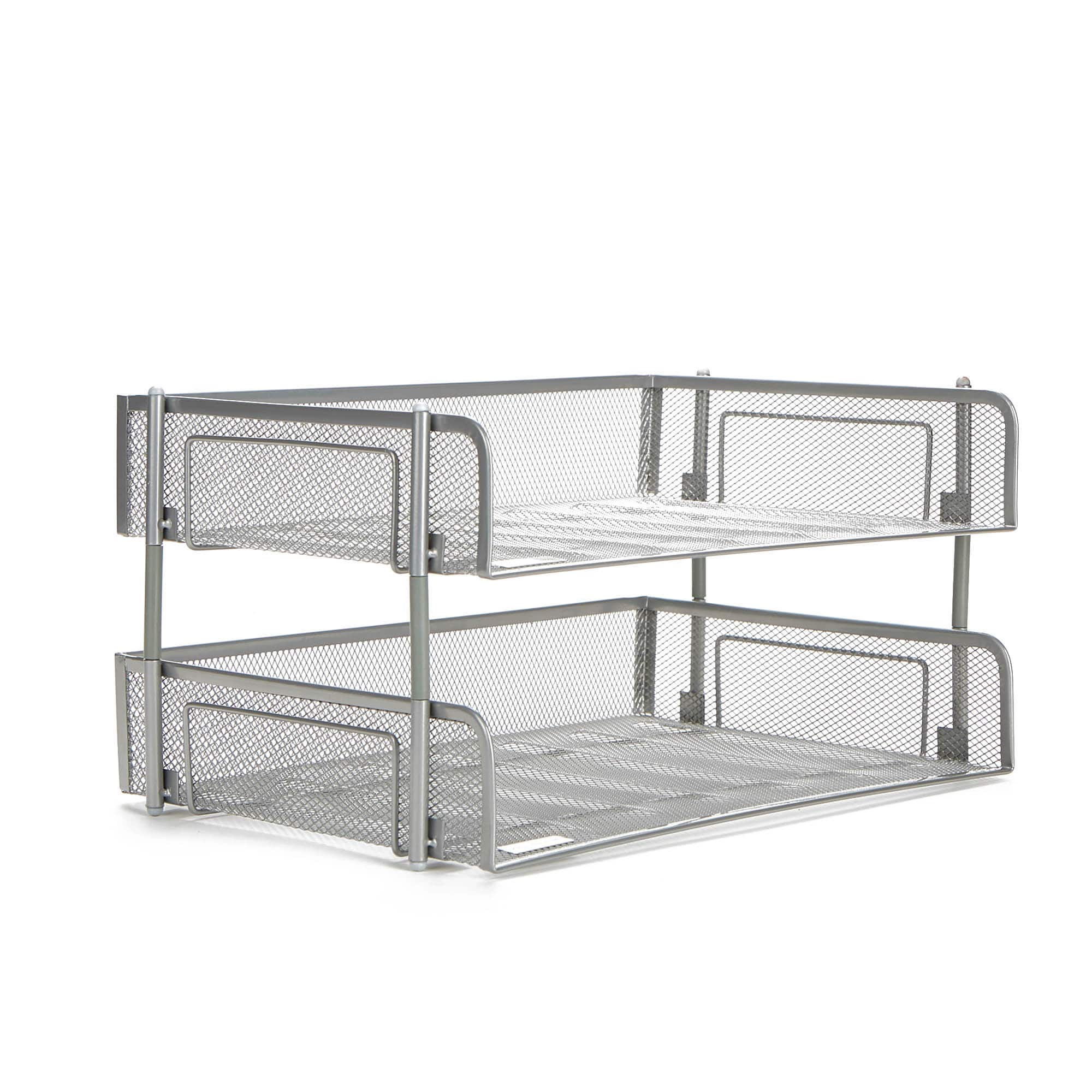 Mind Reader 2 Pack Silver Stackable Metal Mesh Organizer