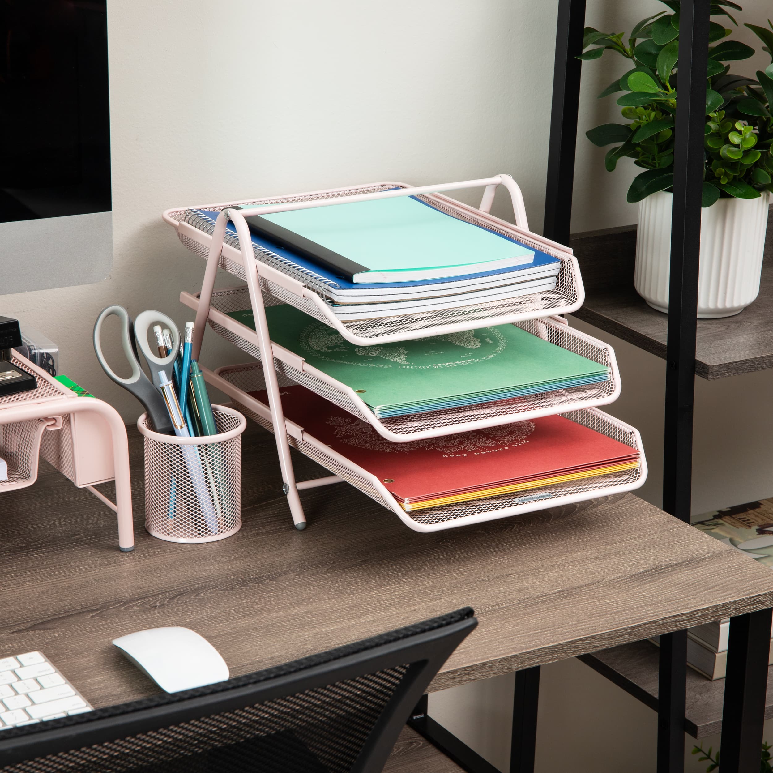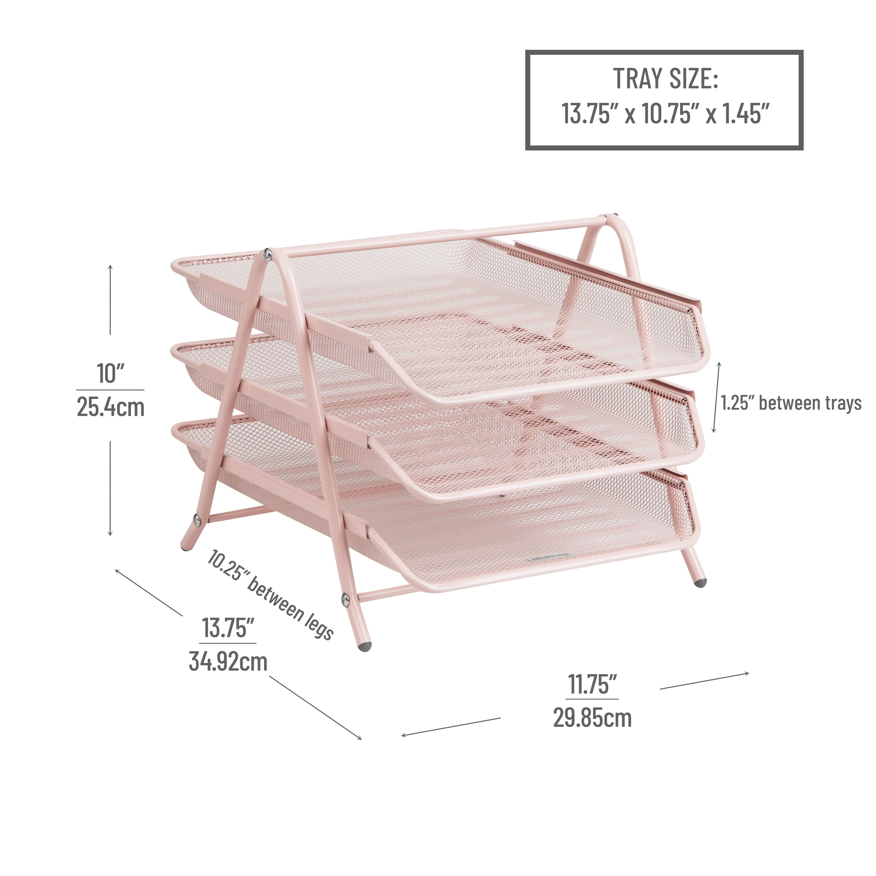Mind Reader 3-Tier Paper Tray, Desktop Organizer, File Storage, Workspace, Office, Metal Mesh, 11.75"L x 13.75"W x 10"H, Pink