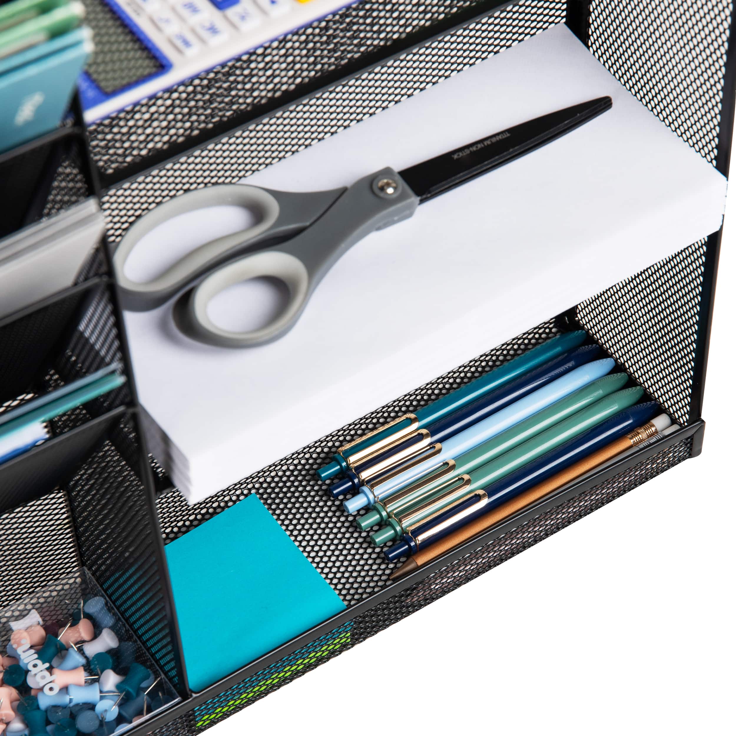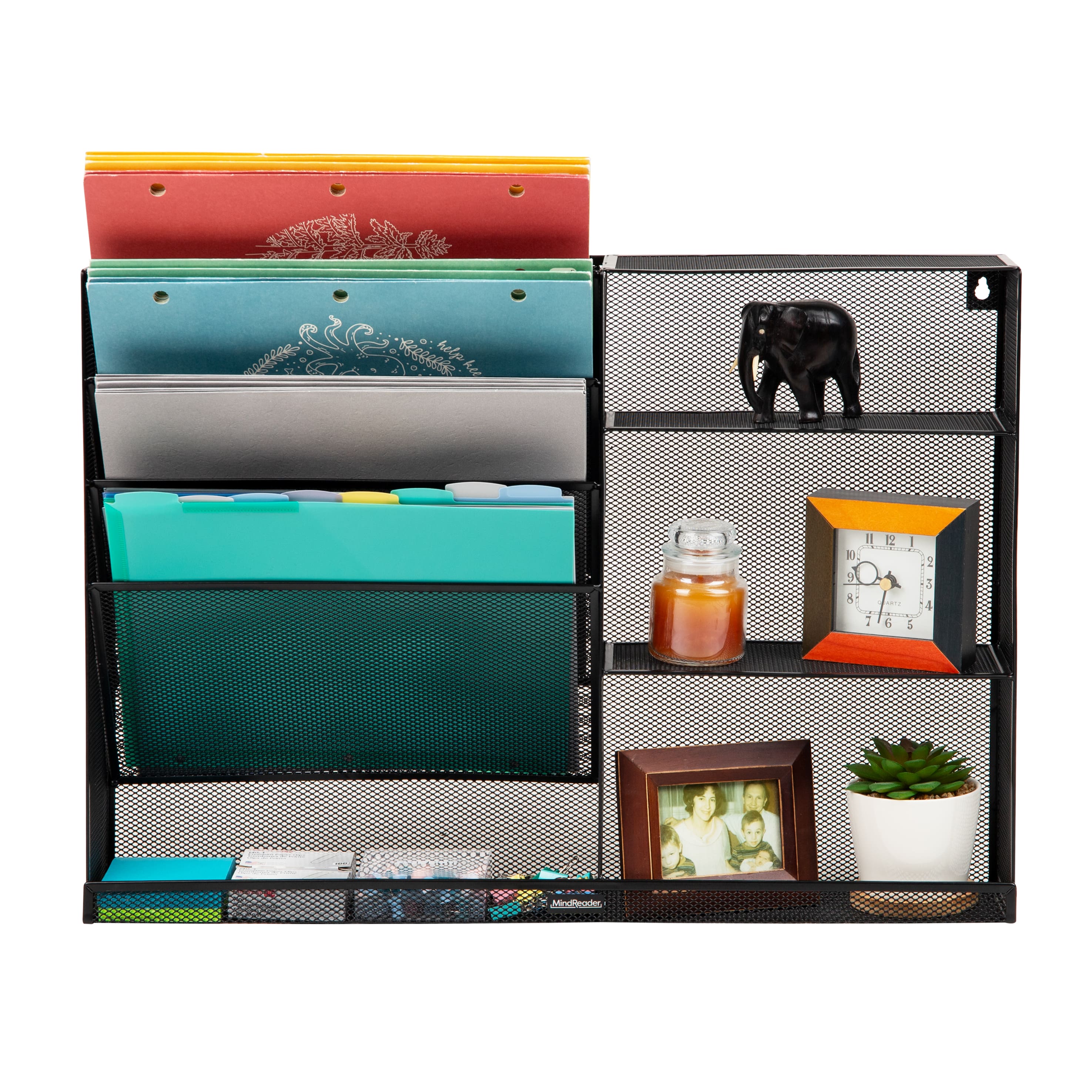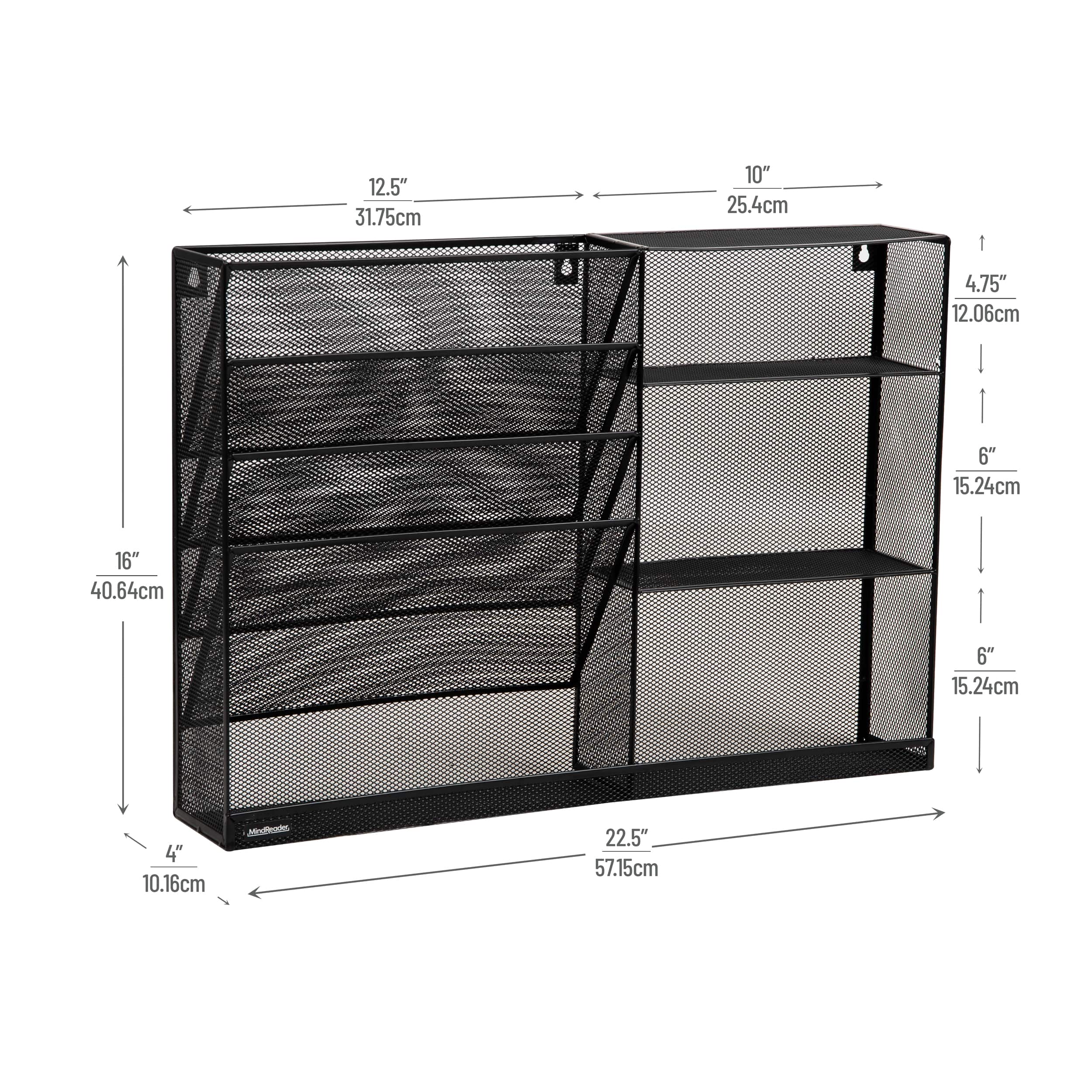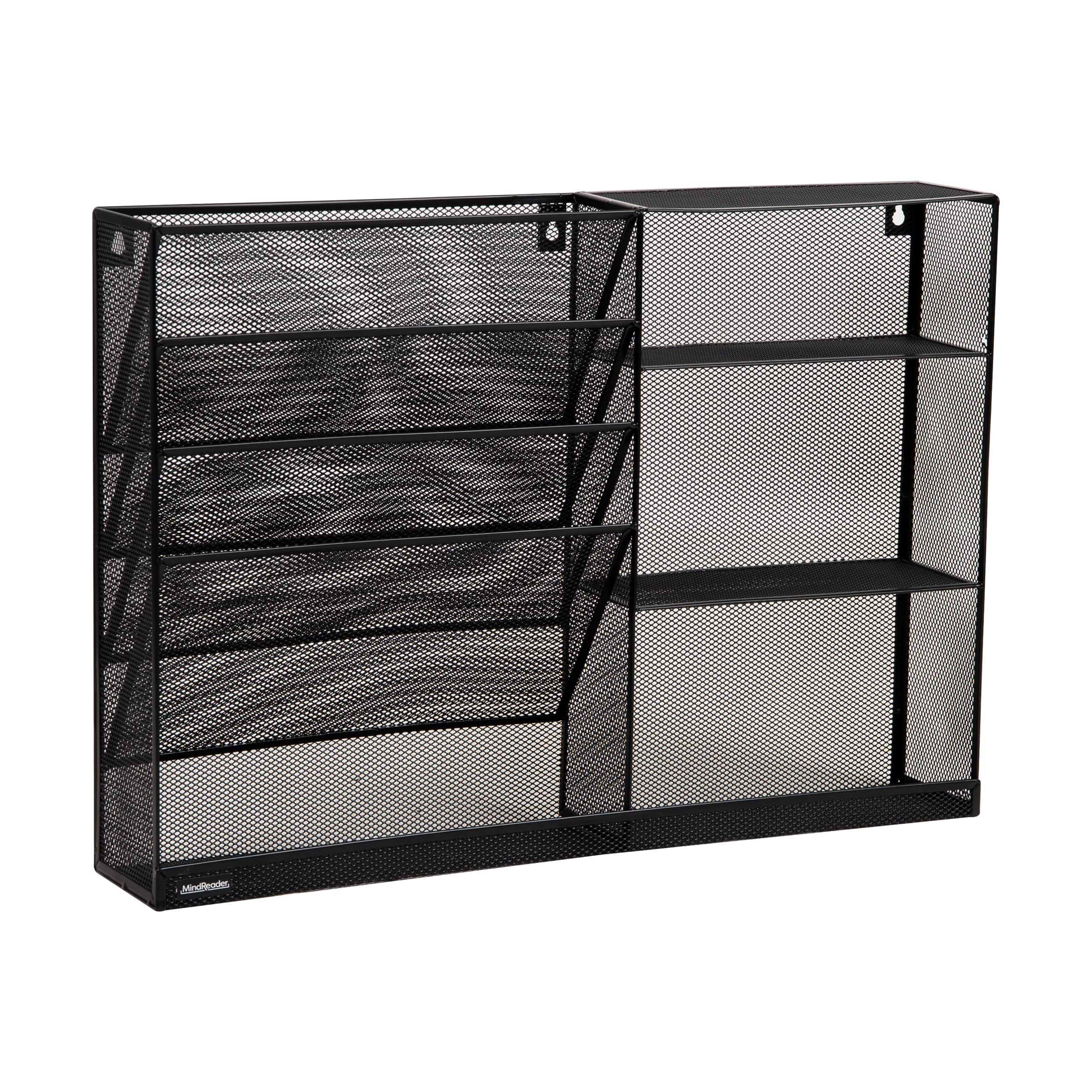 Mind Reader 4-Tier Vertical File Storage and Shelves, Desktop Organizer, Wall Mount, Office, Metal Mesh, 22.5"L x 4"W x 16"H, Black