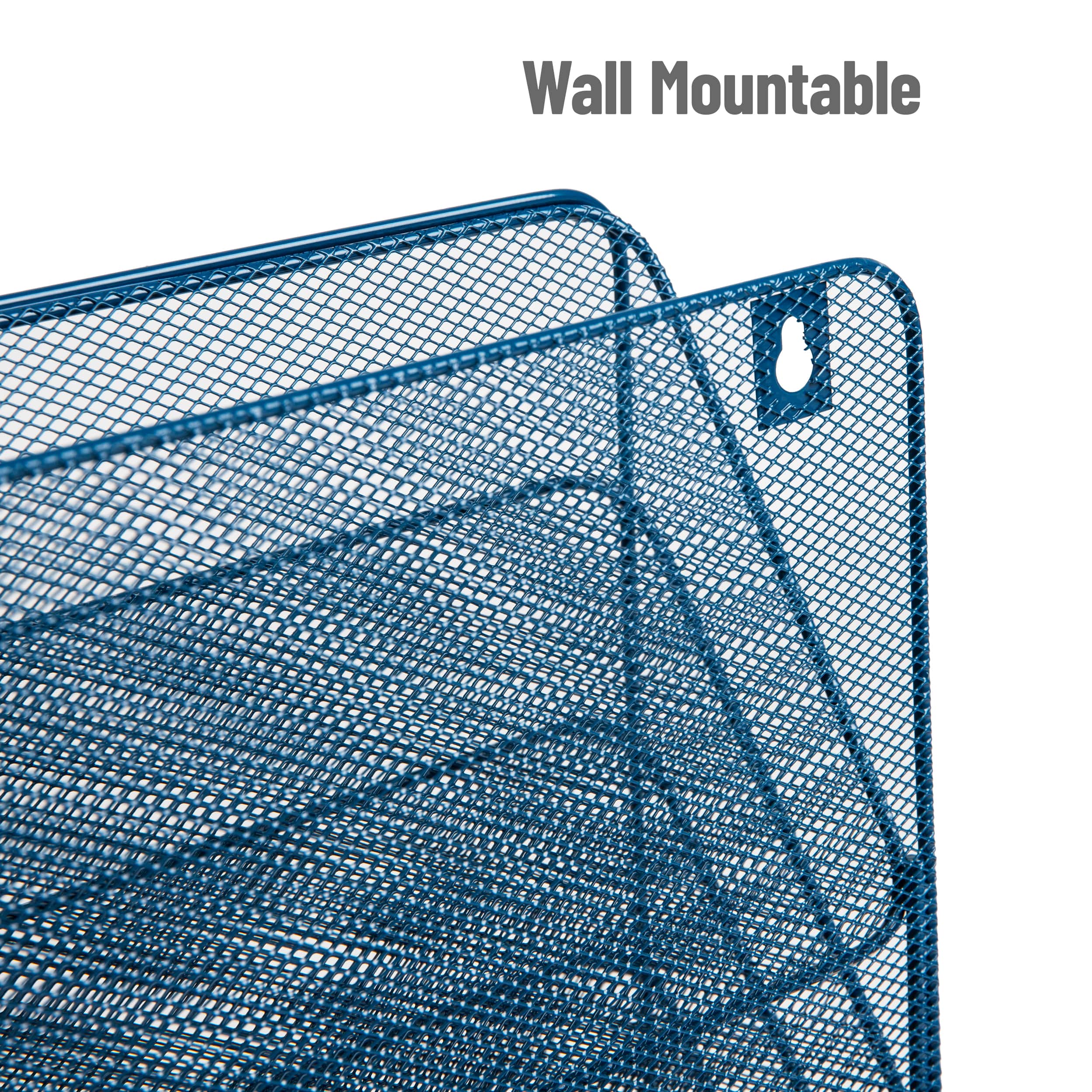 Mind Reader 4-Tier Vertical File Storage, Desktop Organizer, Wall Mount, Office, Metal Mesh, 12.5"L x 4"W x 16.5"H, Turquoise