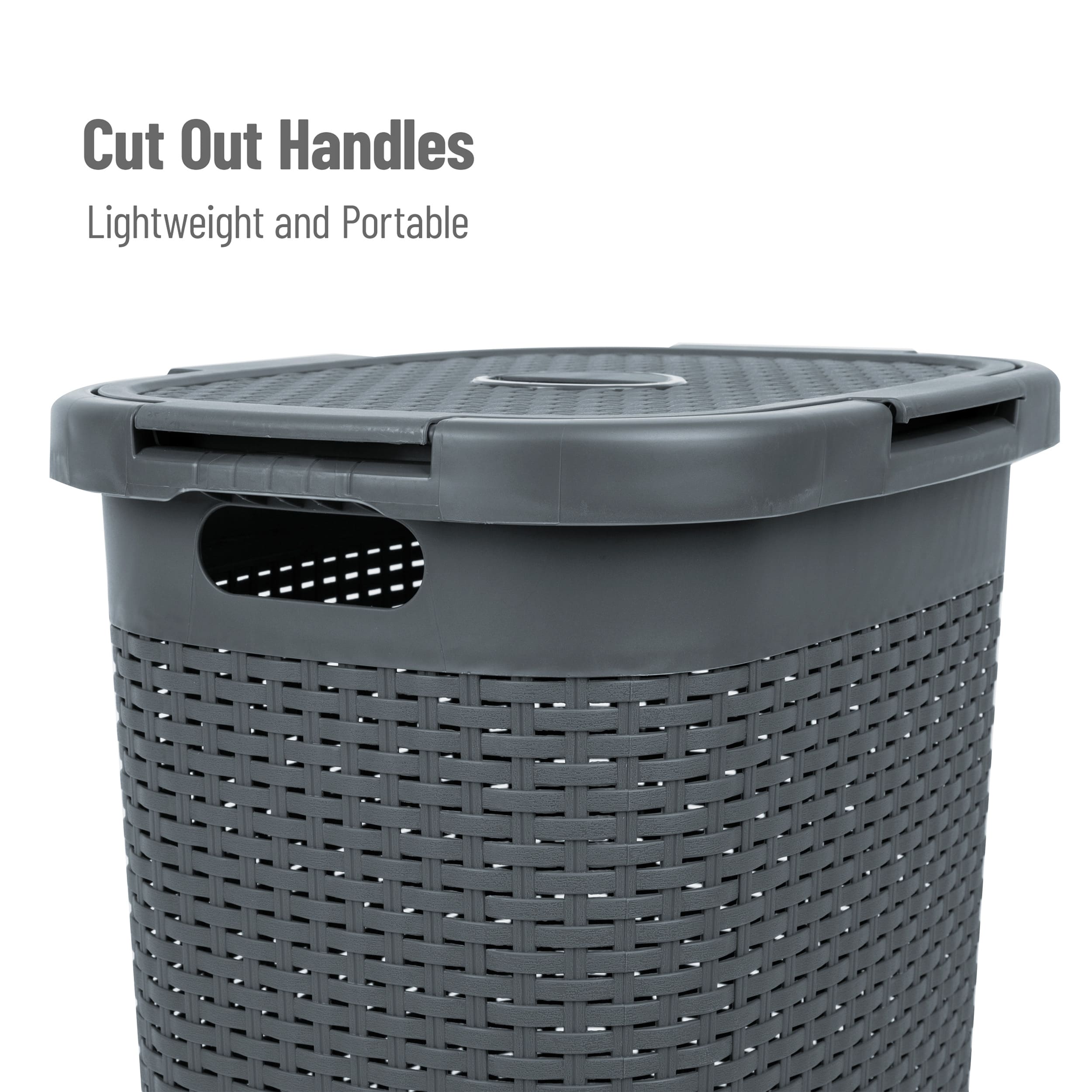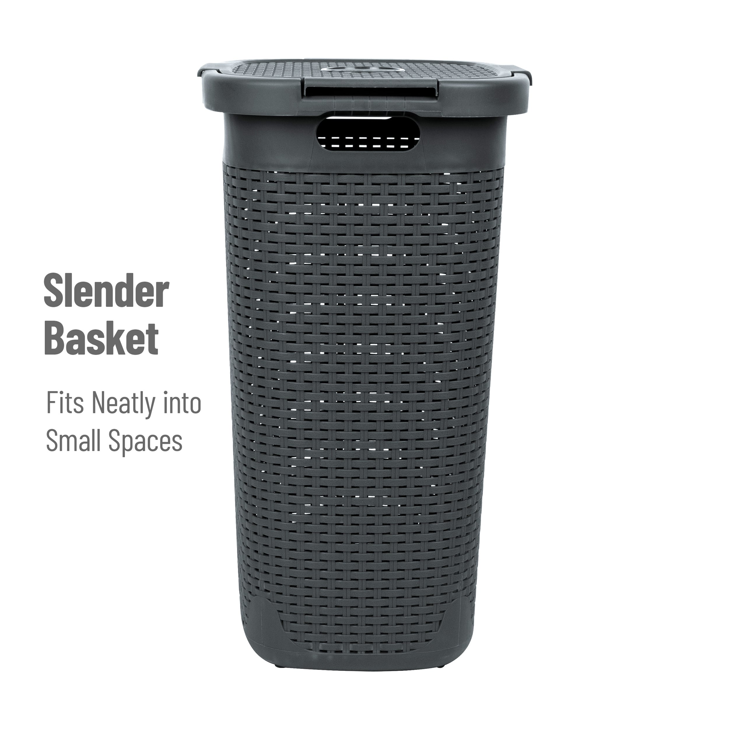 Mind Reader 60L Ventilated Slim Laundry Hamper with Cut Out Handles & Attached Hinged Lid, 2ct.