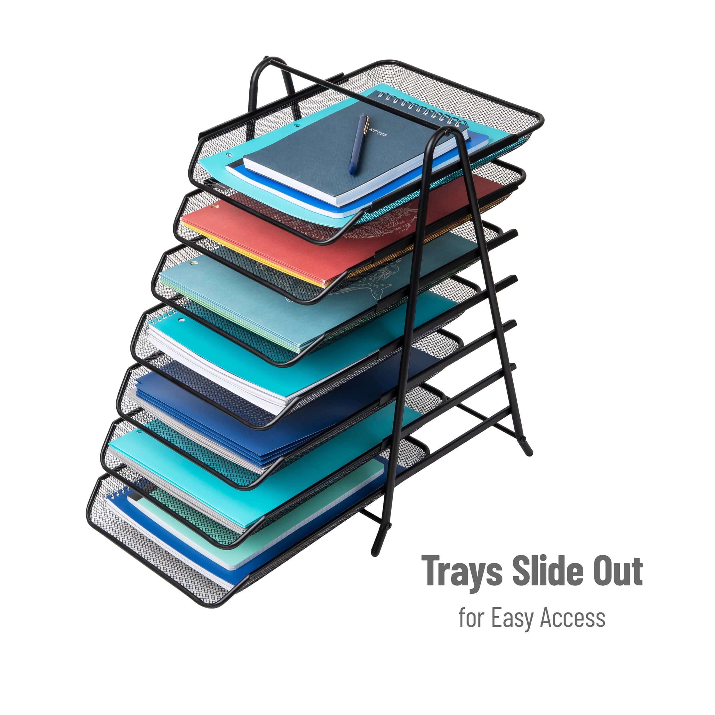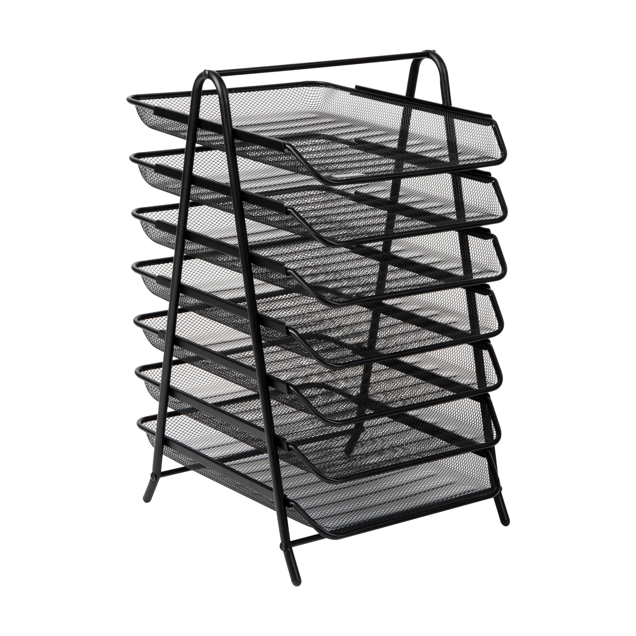 Mind Reader 7-Tier Paper Tray, Desktop Organizer, File Storage, Office, Metal Mesh, Black