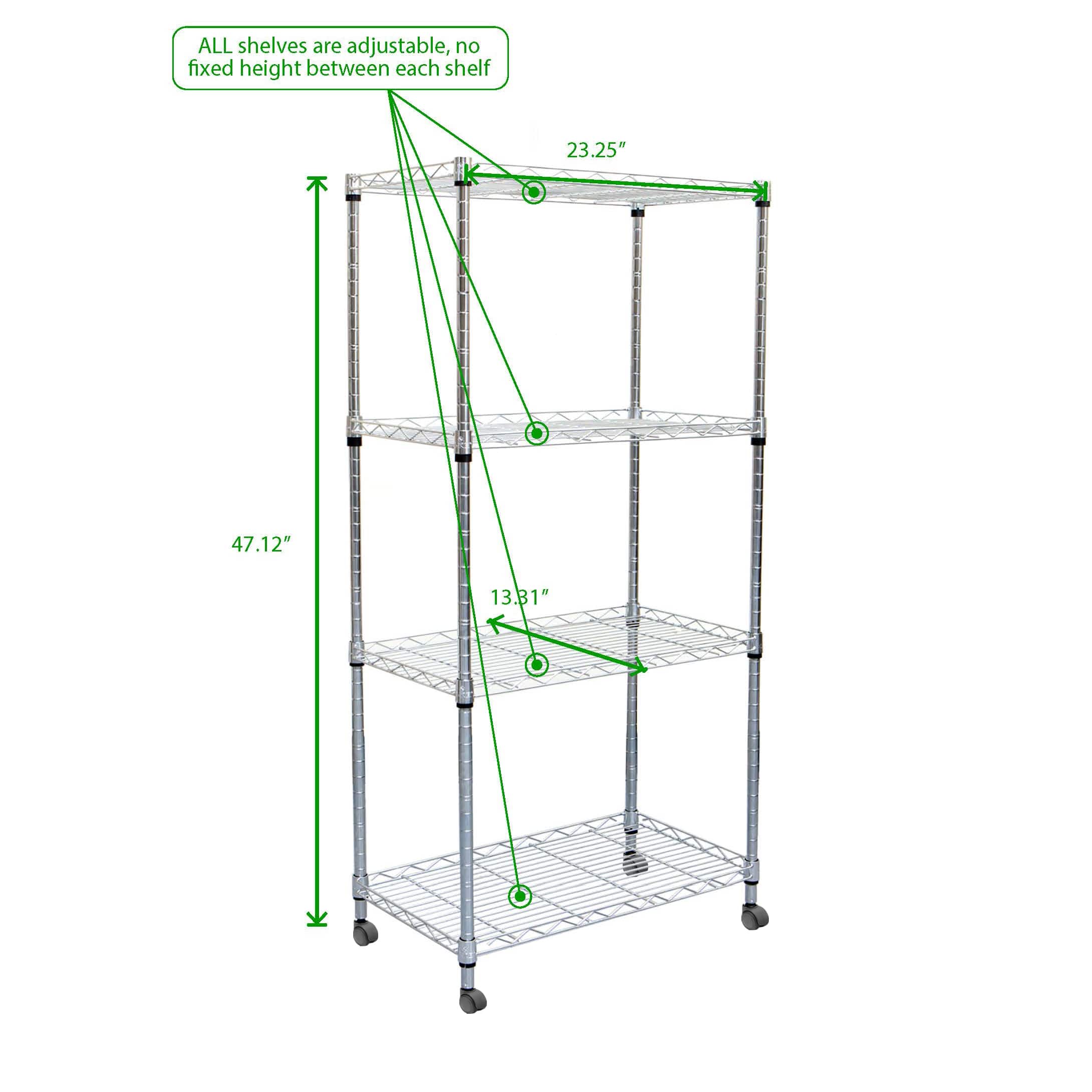 Mind Reader Adjustable 4-Tier Metal Storage Rack with Wheels