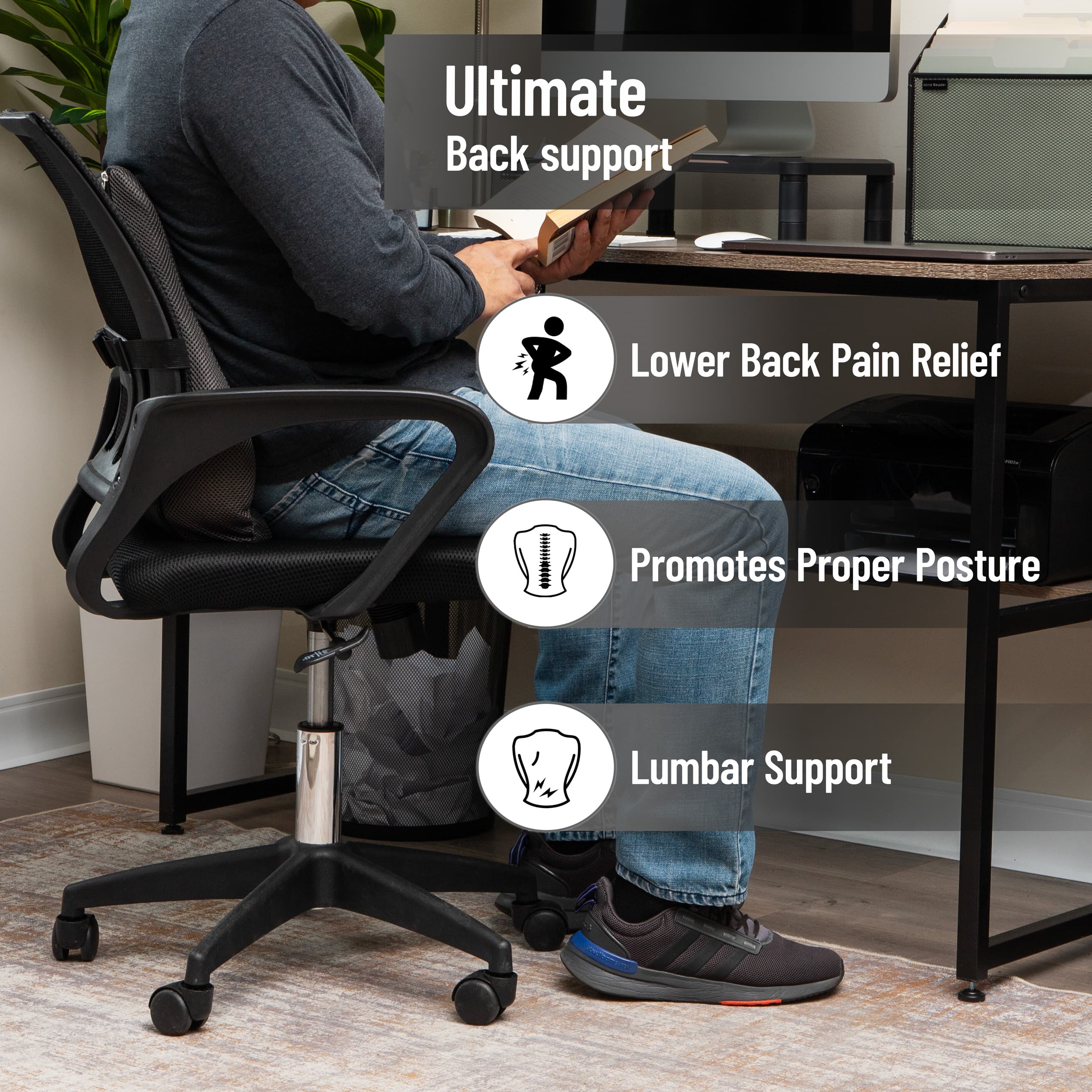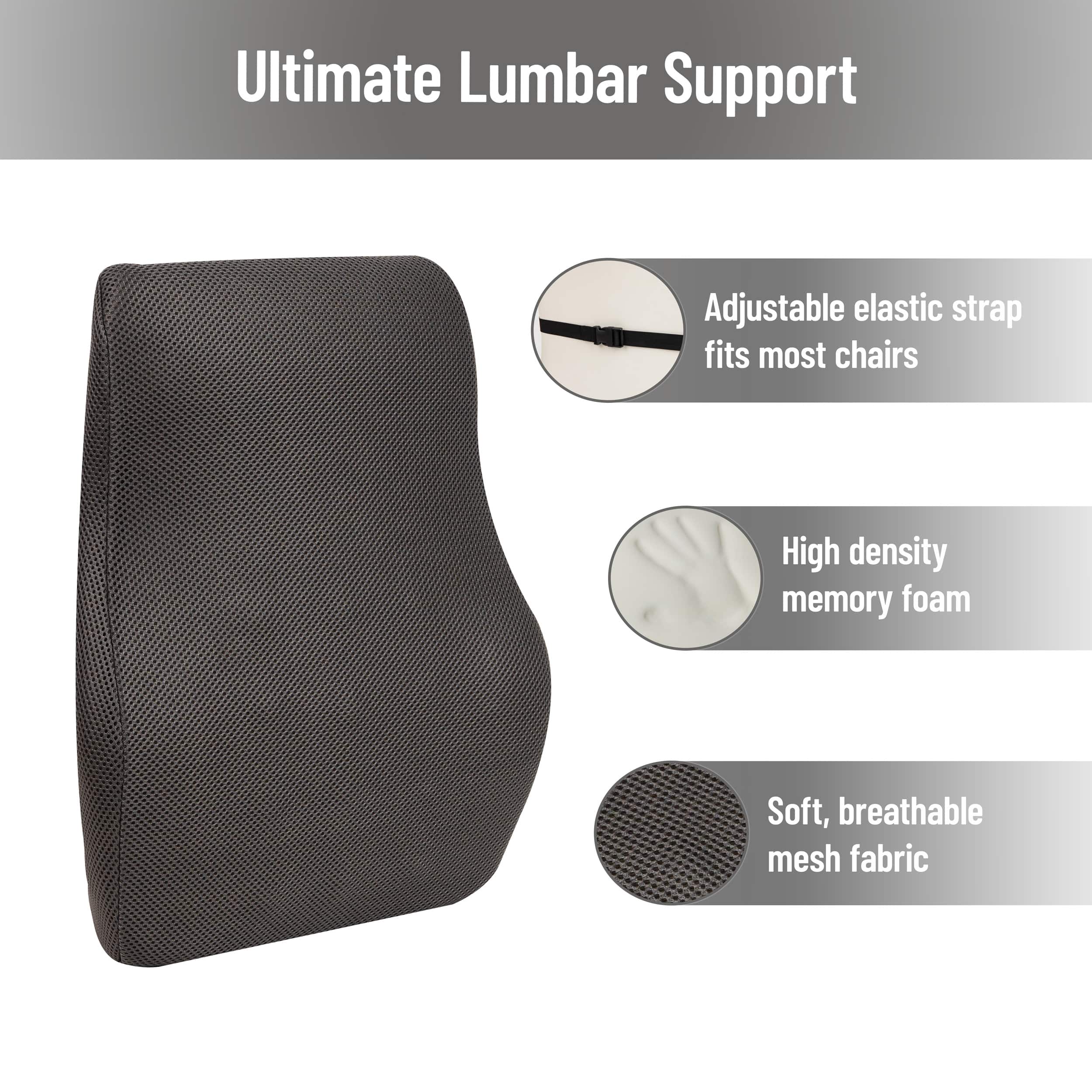 Mind Reader Air-Cloud Lumbar Cushion, Ergonomic Memory Foam Back Support Pillow for Office Chairs, Recliners, and Car Seats, Chiropractor-Recommended, Gray