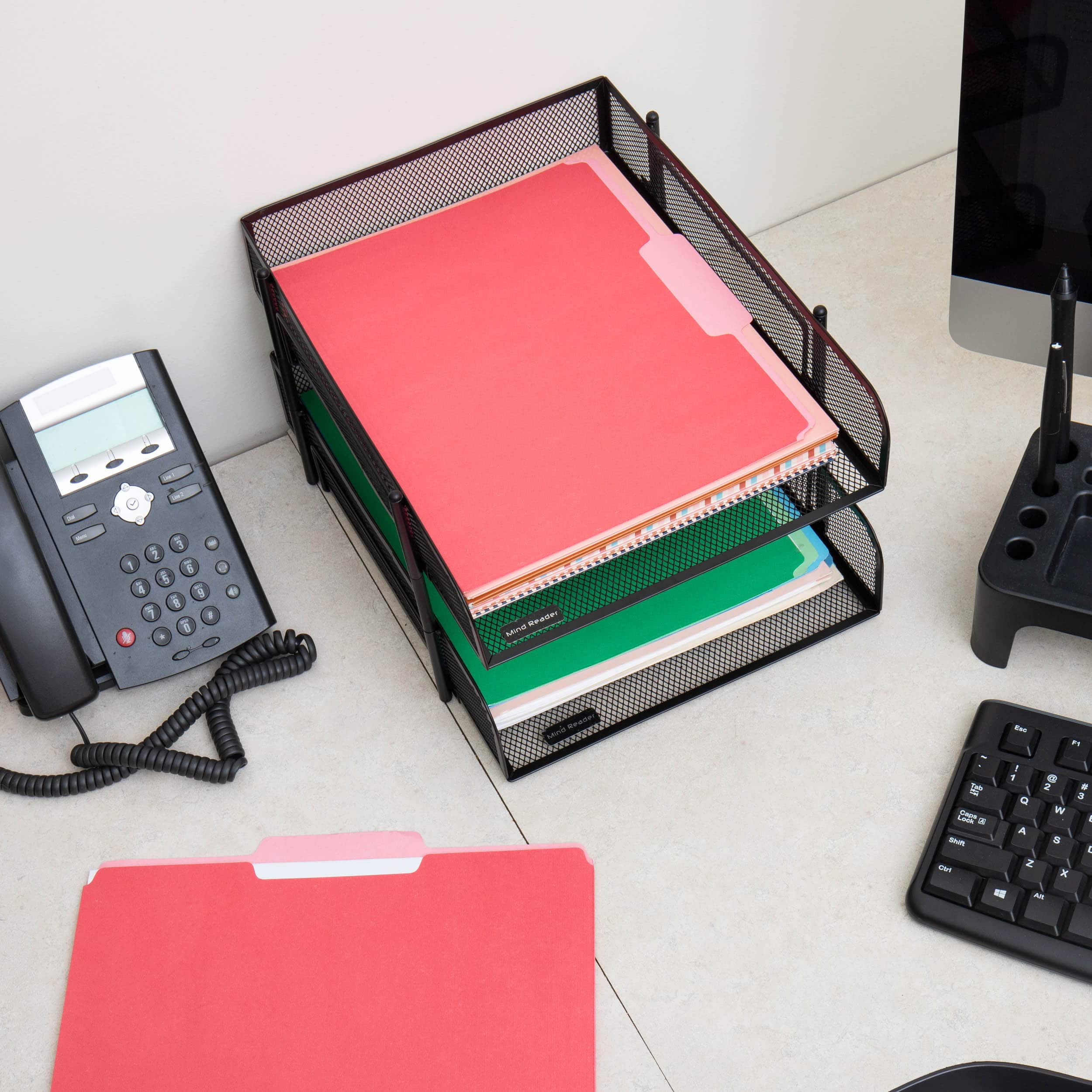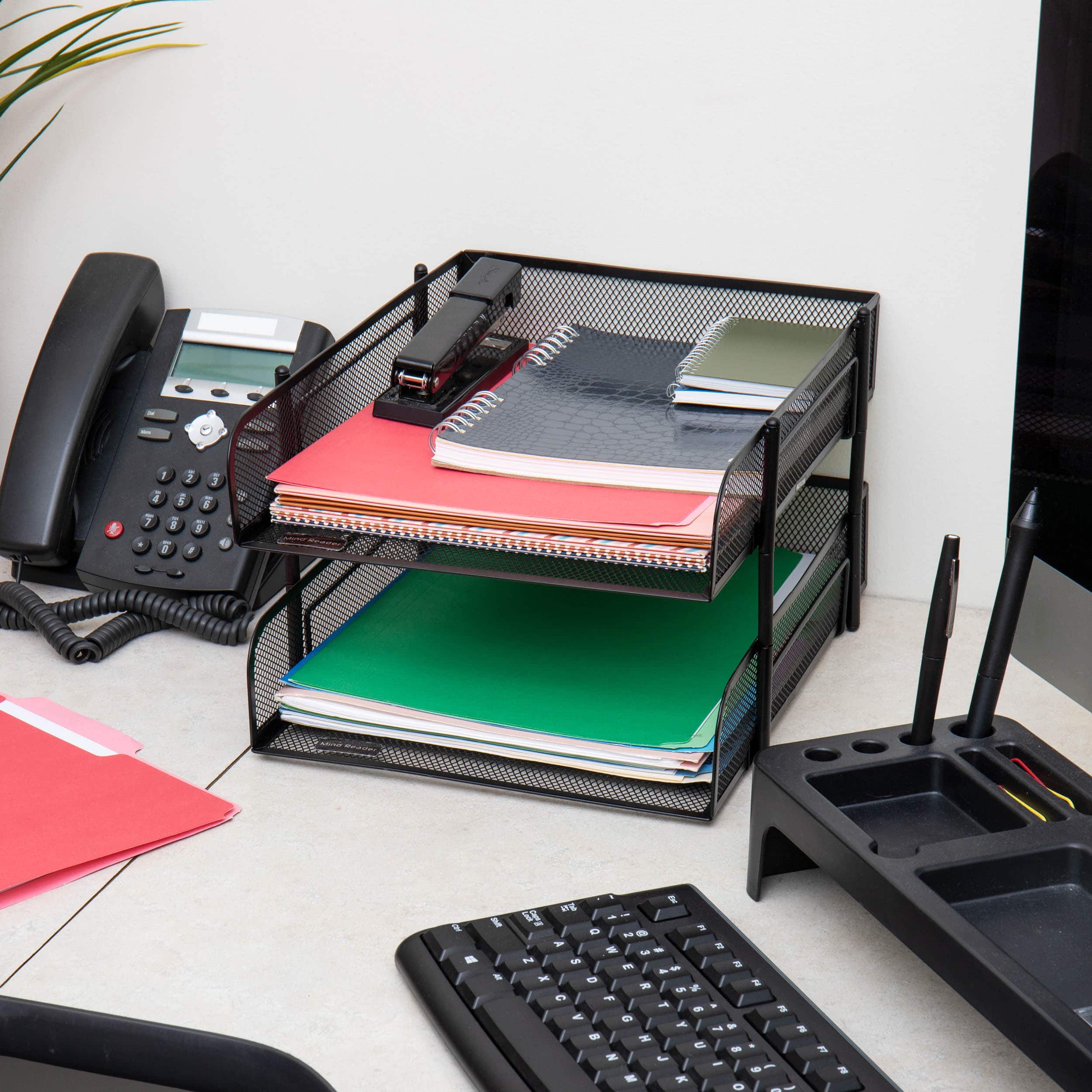 Mind Reader Black 2 Piece Stackable Metal Mesh Letter Tray