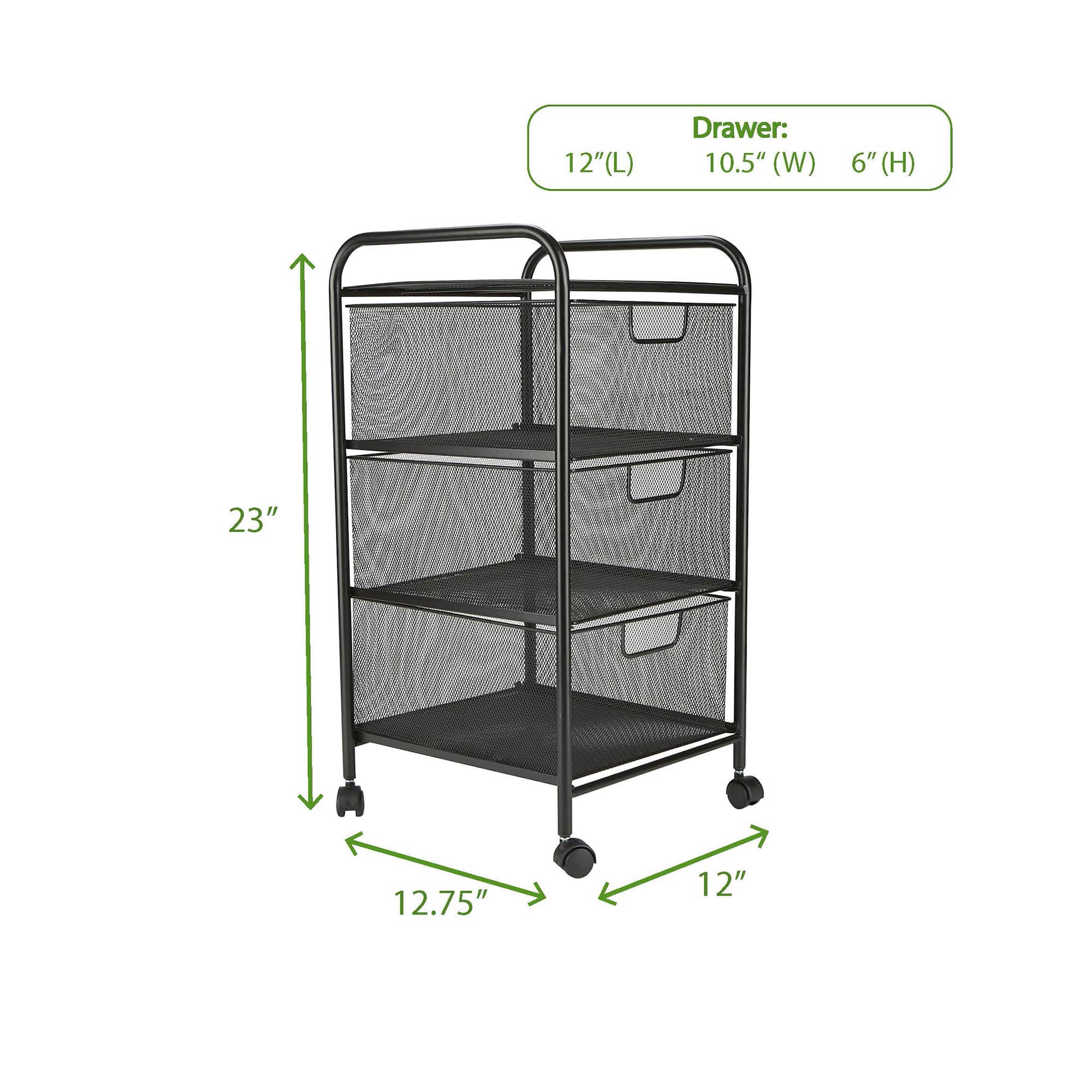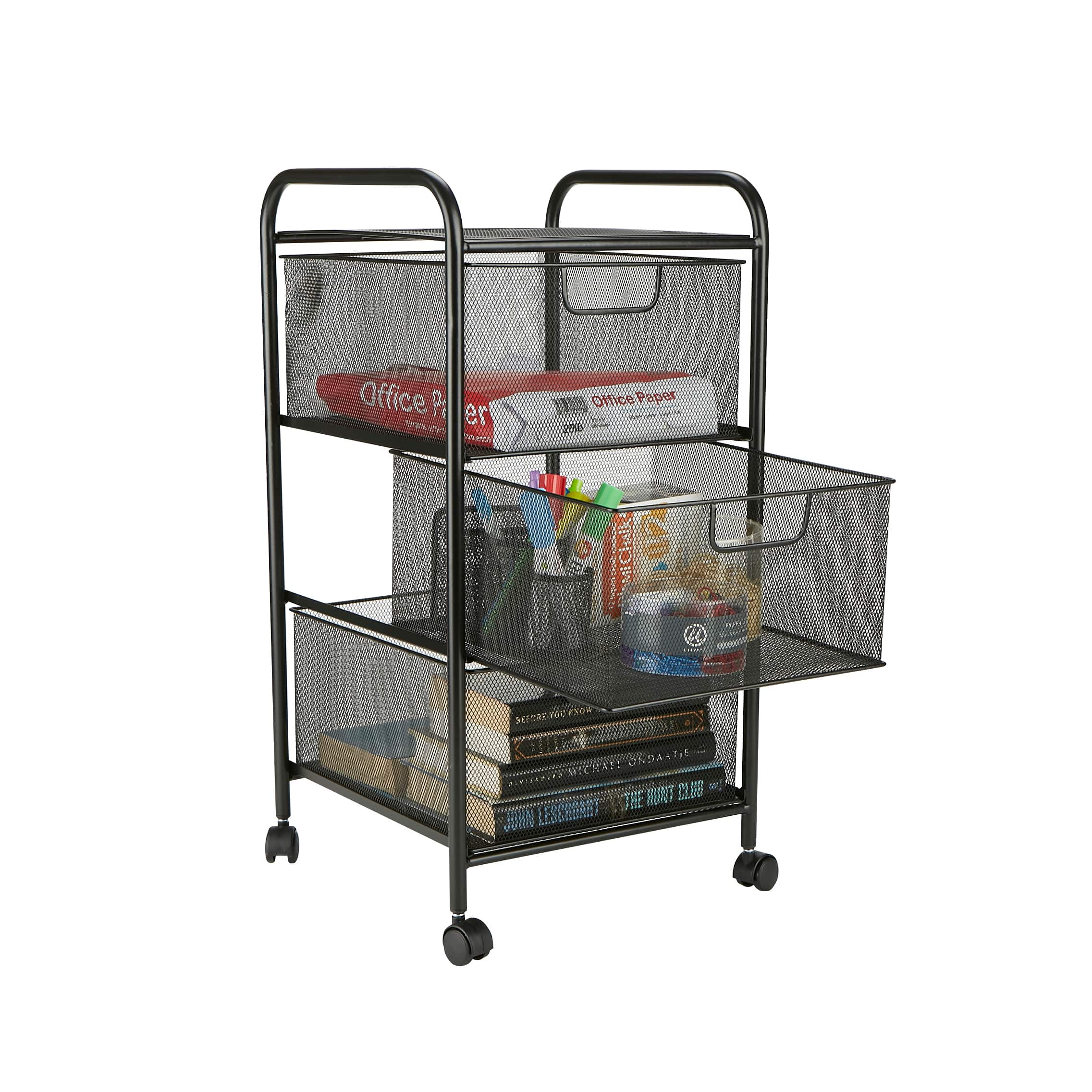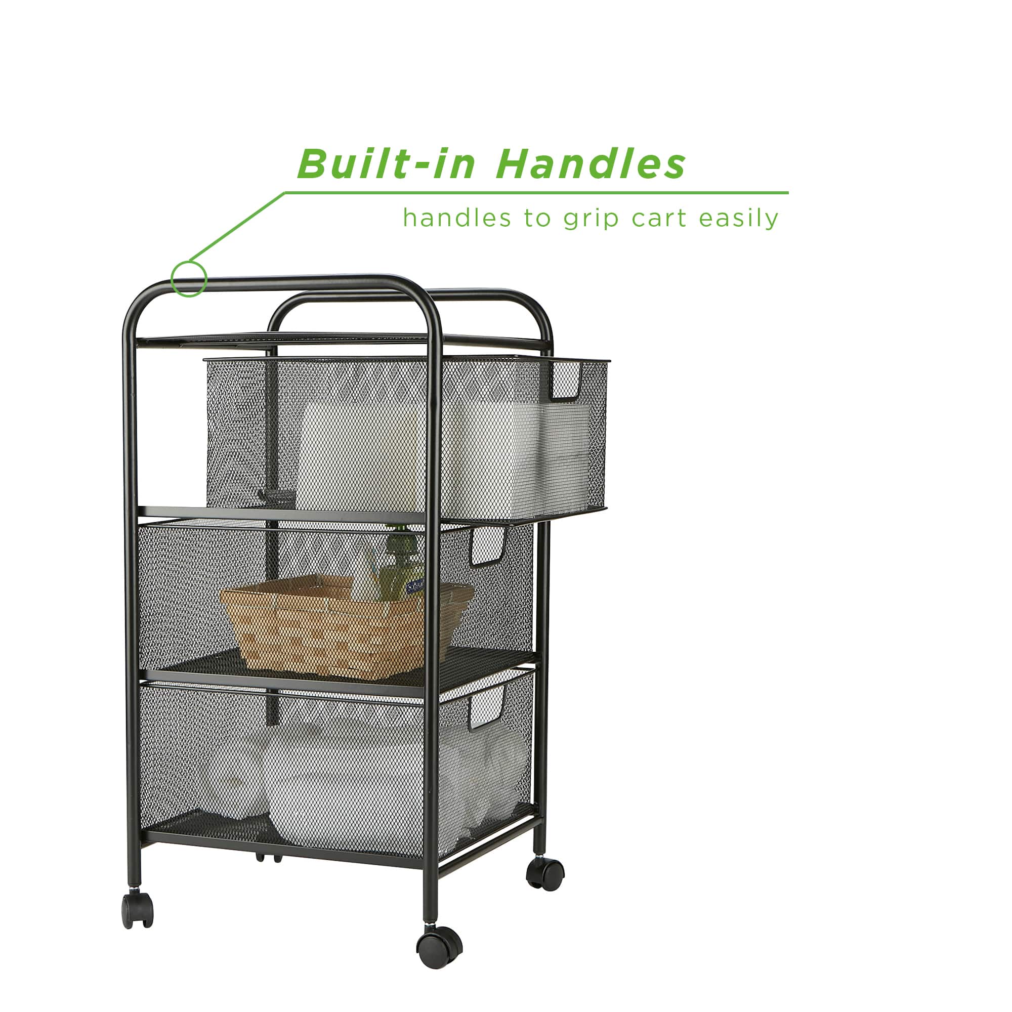 Mind Reader Black 3 Drawer Mesh Rolling Cart
