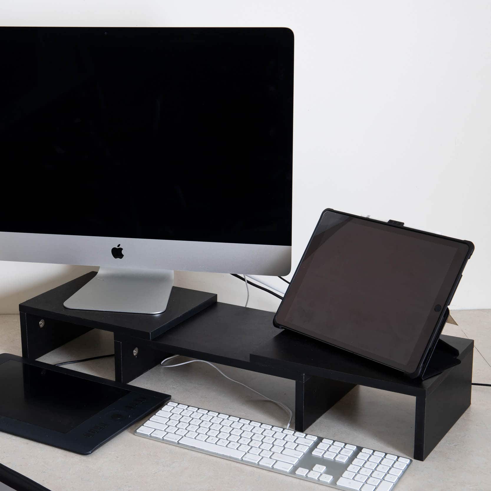 Mind Reader Black Adjustable 2 Tier Dual Monitor Riser