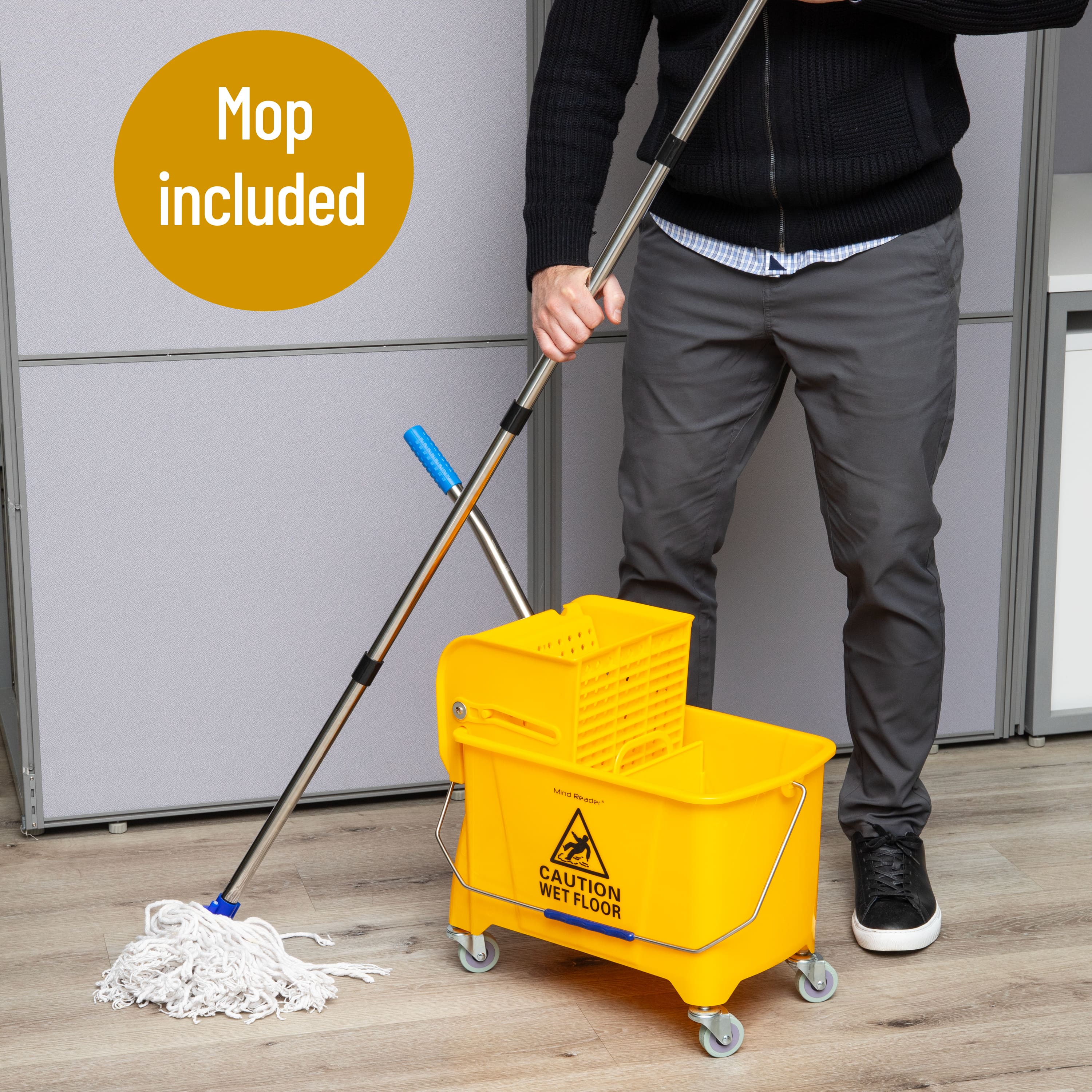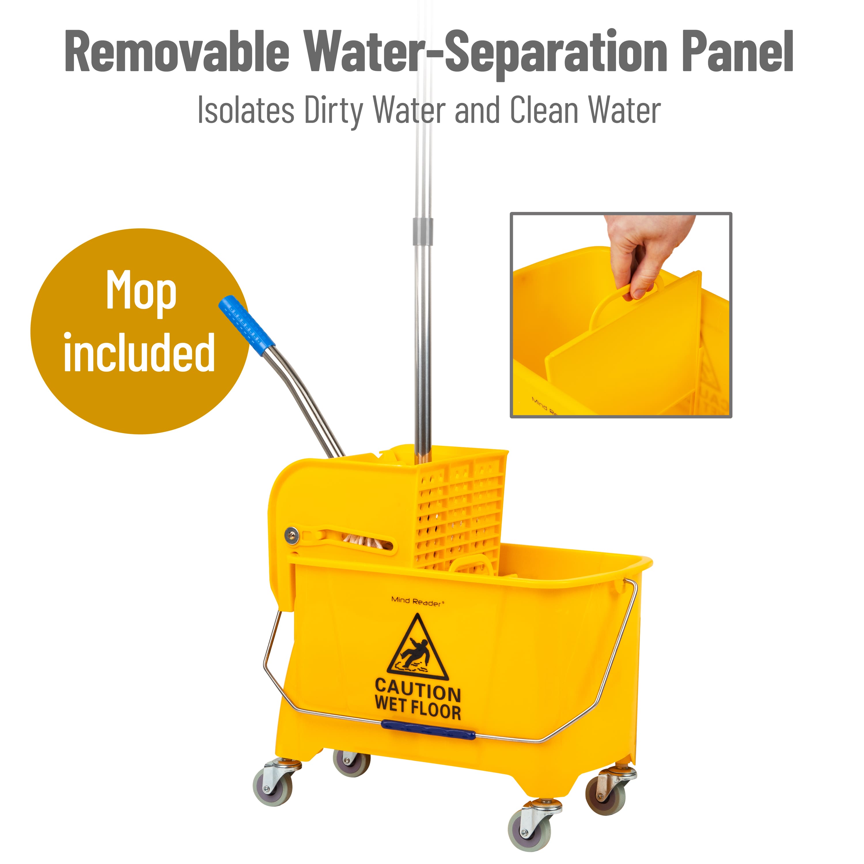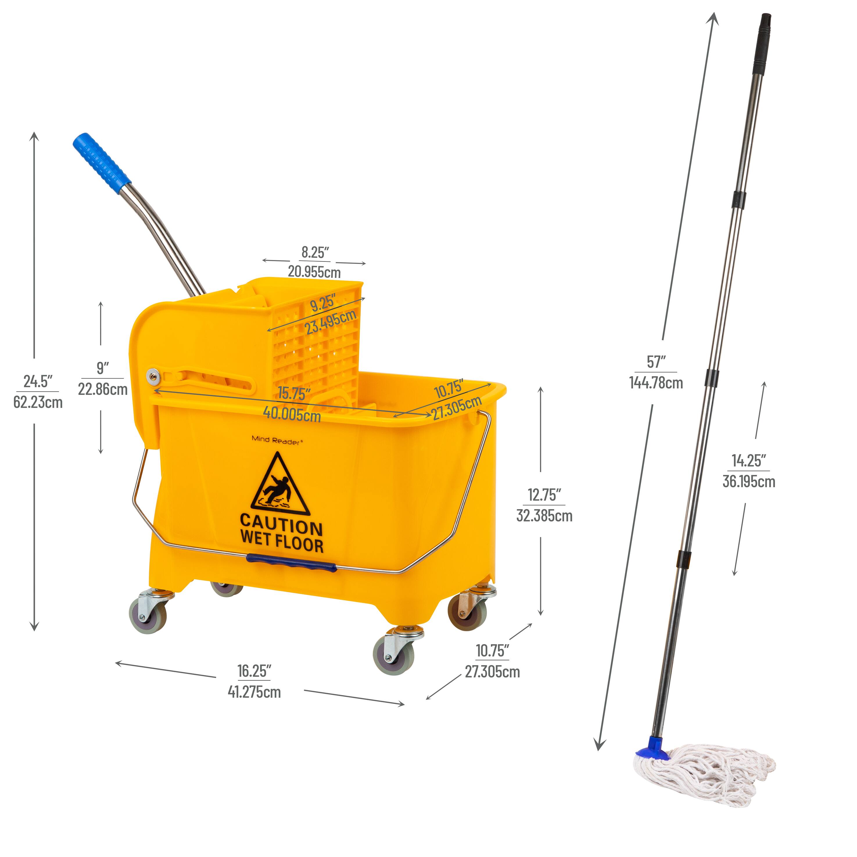 Mind Reader Bucket with Wringer and Mop Set, 22 Qt (5.5 Gallon), Floor Cleaning, Wheels, 16.25"L x 10.75"W x 24.5"H, Yellow
