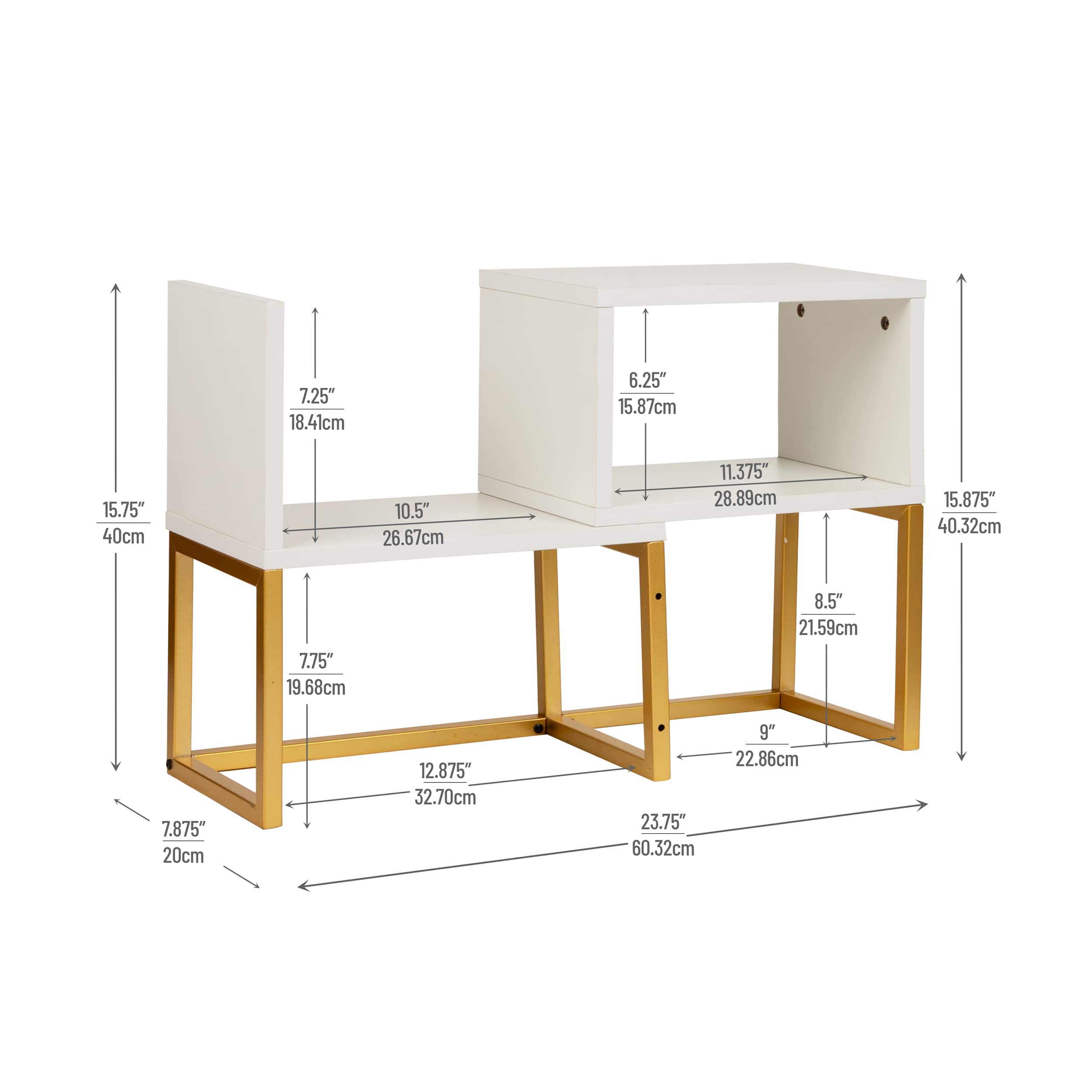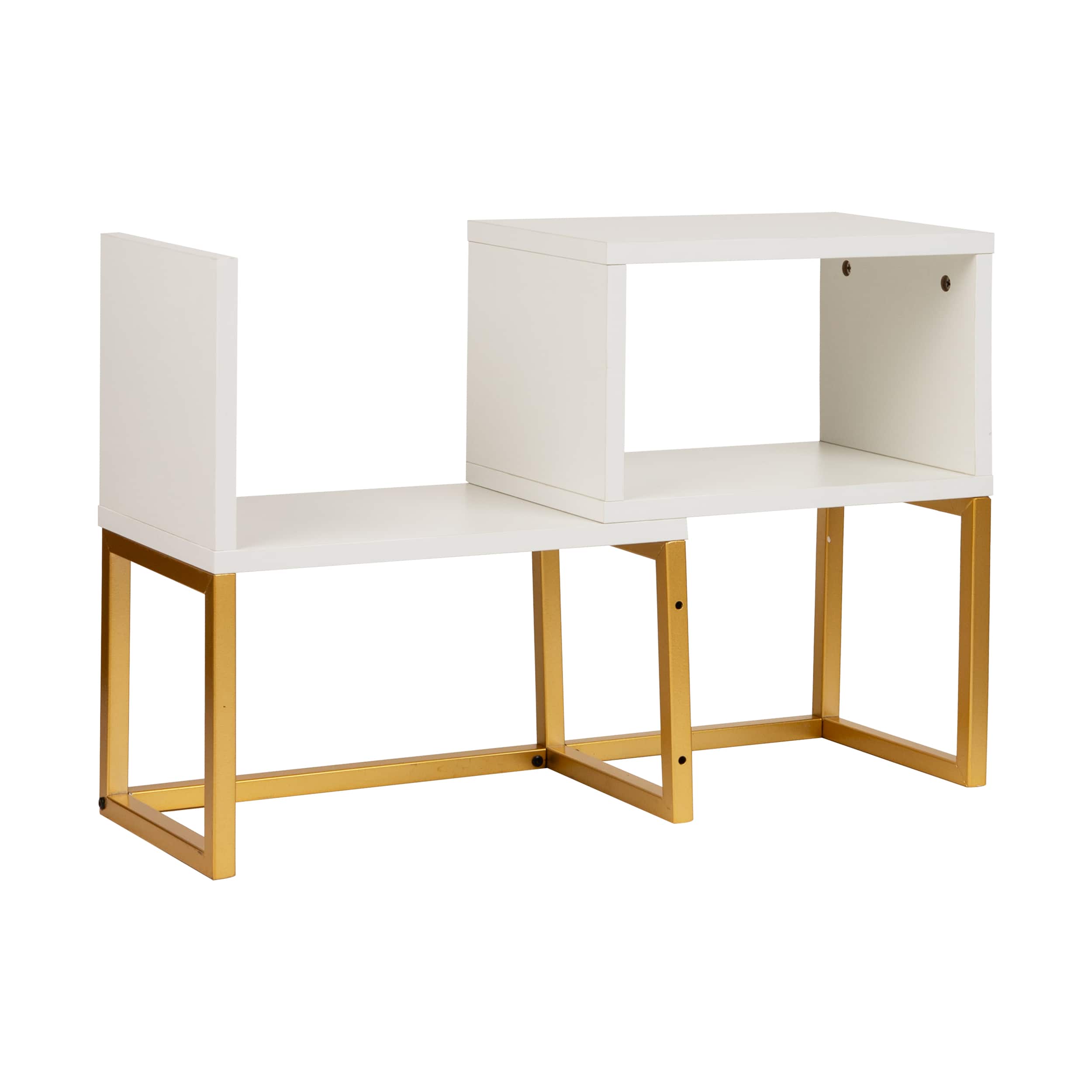 Mind Reader Desktop Bookshelf, 5-Compartment Organizer for Office Desk, Vanity, or Bathroom, Modern Storage Display, Metal. MDF, White