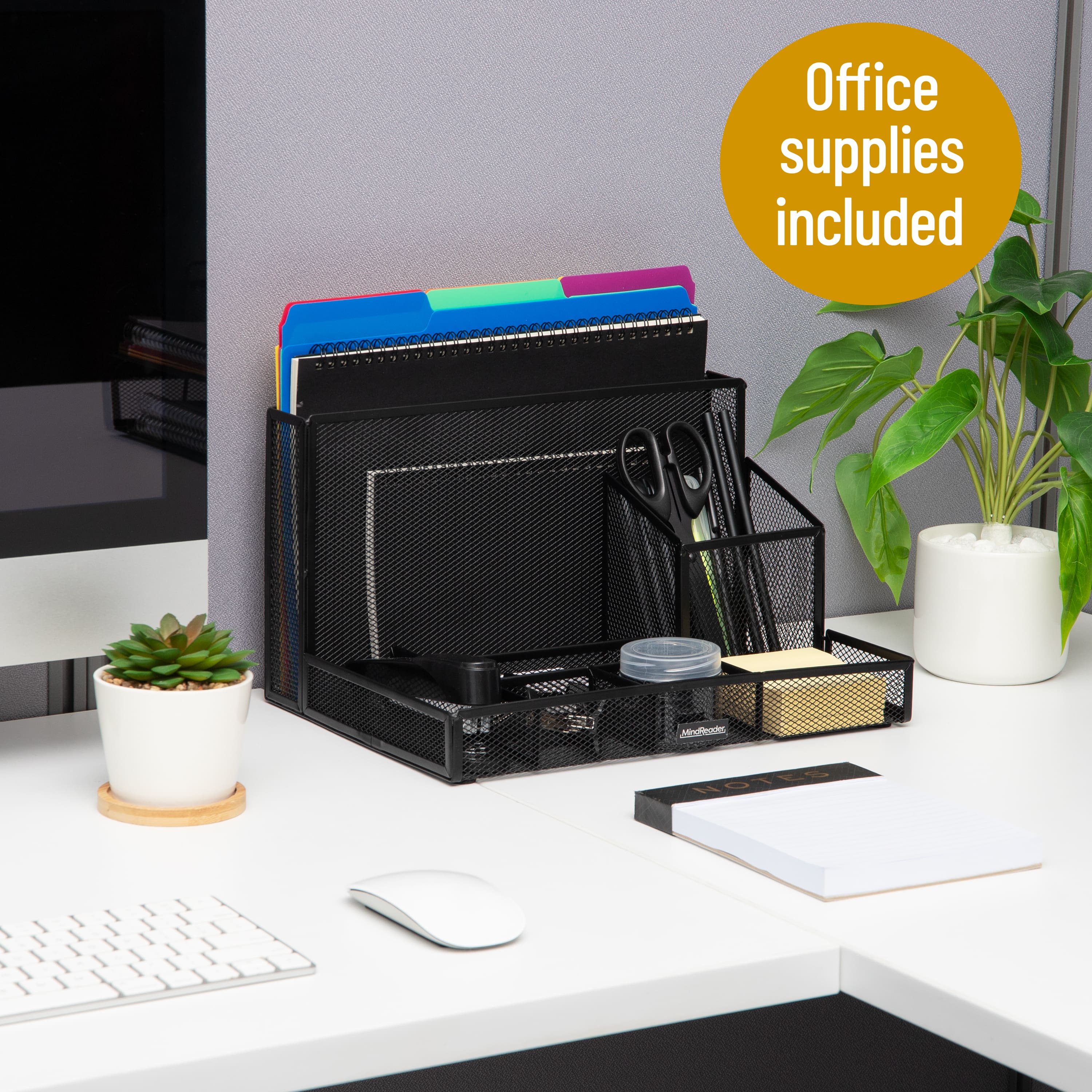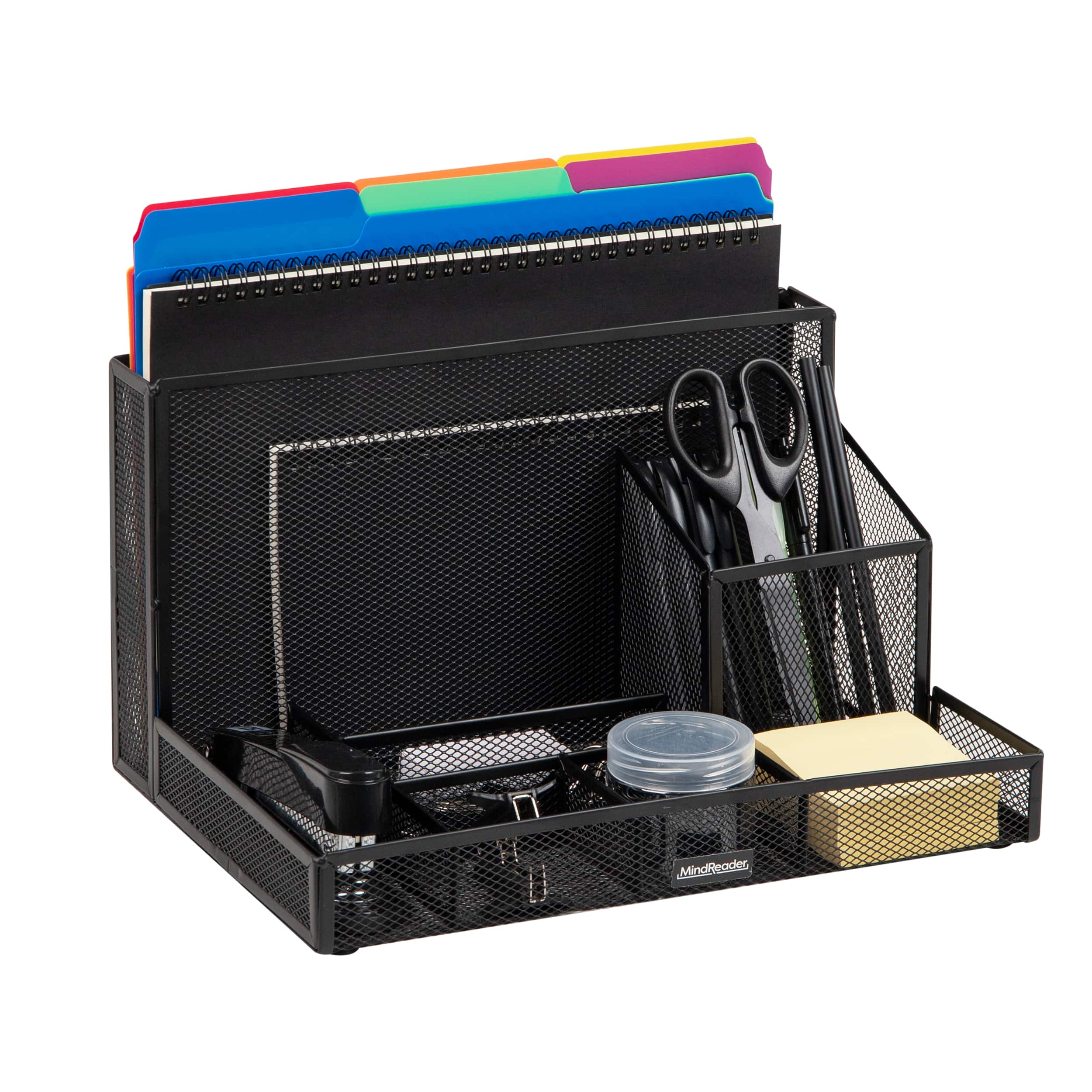 Mind Reader Desktop Organizer and Office Supplies, Vertical File, Storage, Office, Metal Mesh, 12.5"L x 9"W x 7.25"H, Black