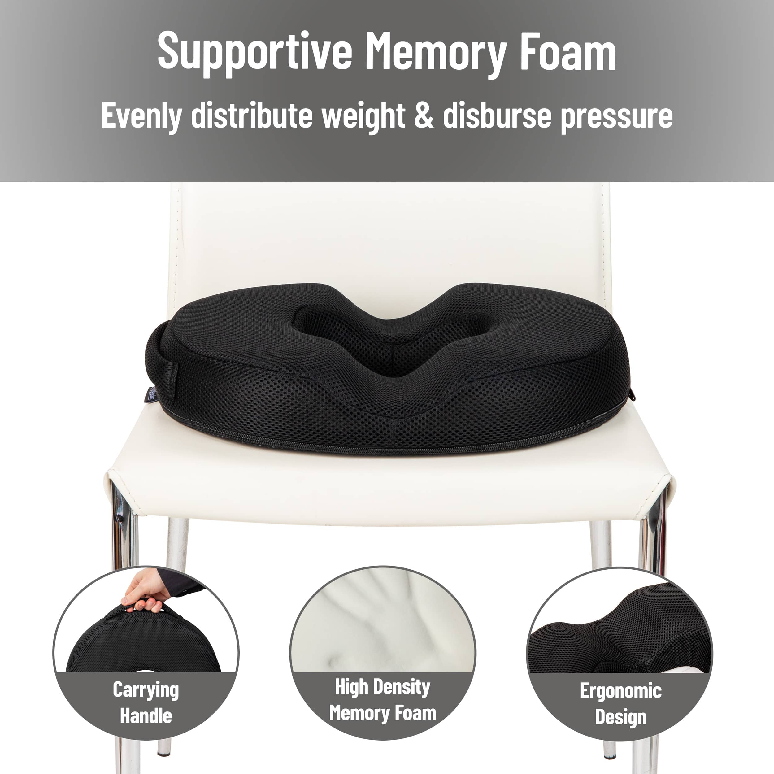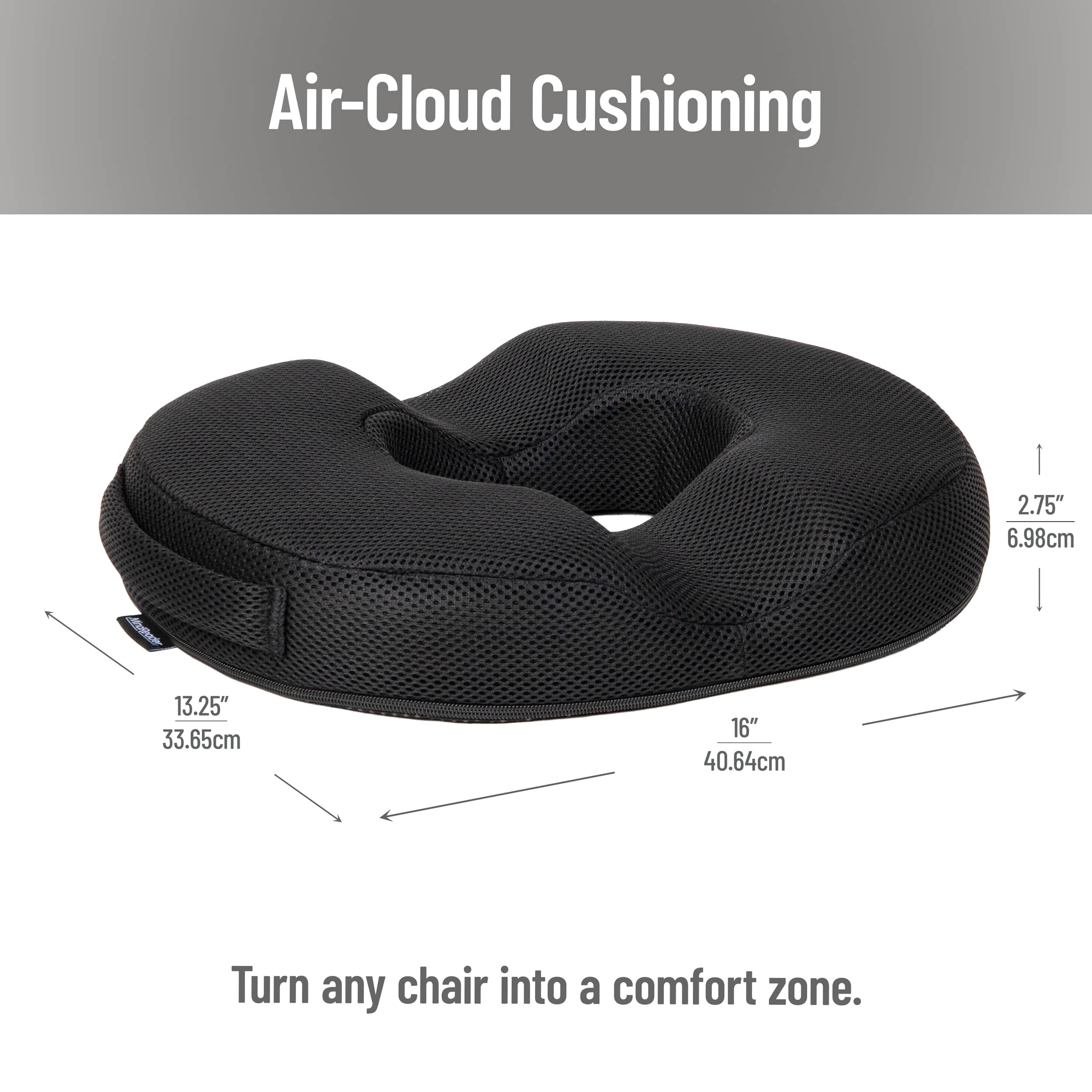 Mind Reader Donut Pillow Seat Cushion with Air-Cloud Technology, Tailbone, Hemorrhoid, Pregnancy Relief, Black