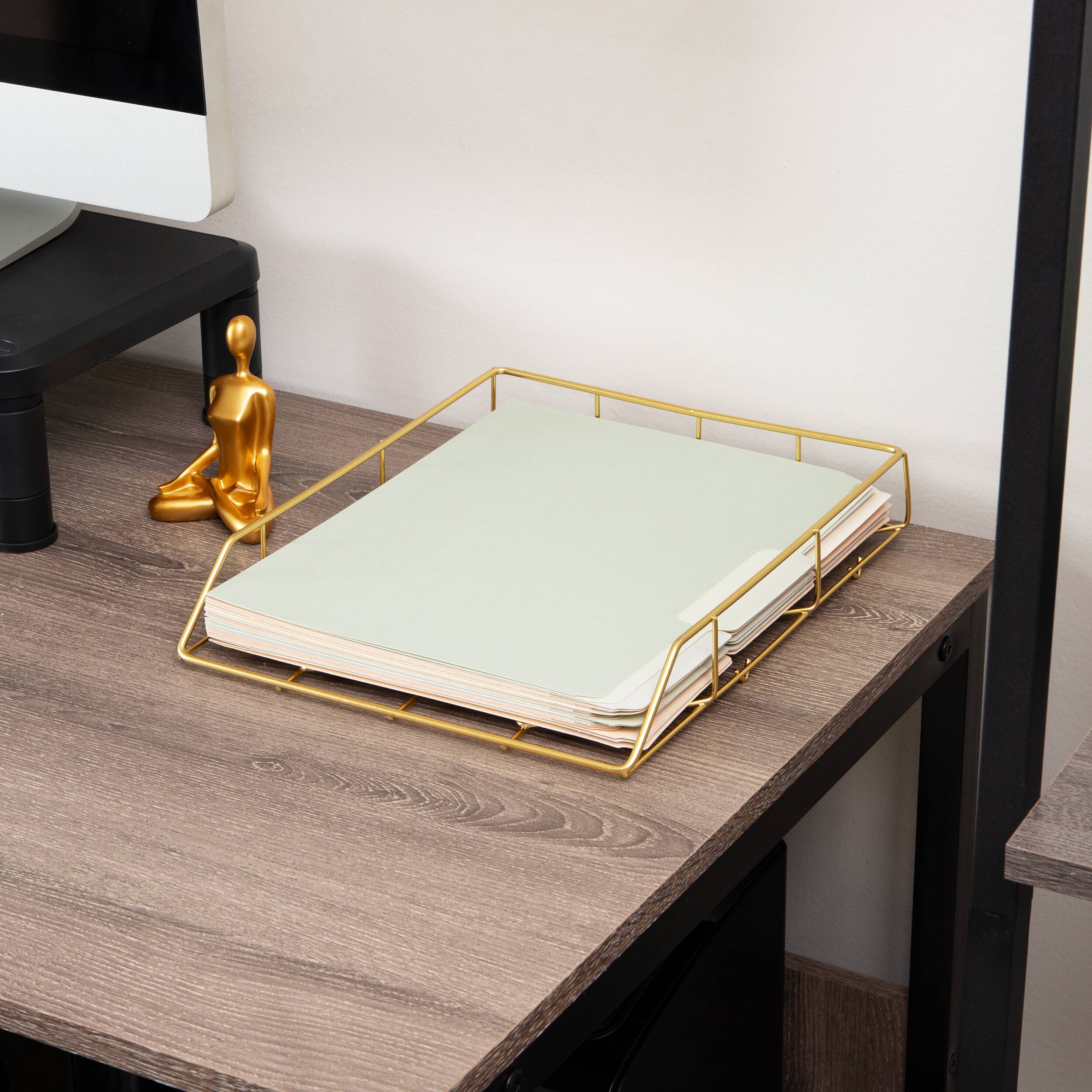 Mind Reader Gold Geometric Paper Tray, Modern Organizer for Documents, Folders, and Office Supplies, Durable and Stylish, Metal, Gold