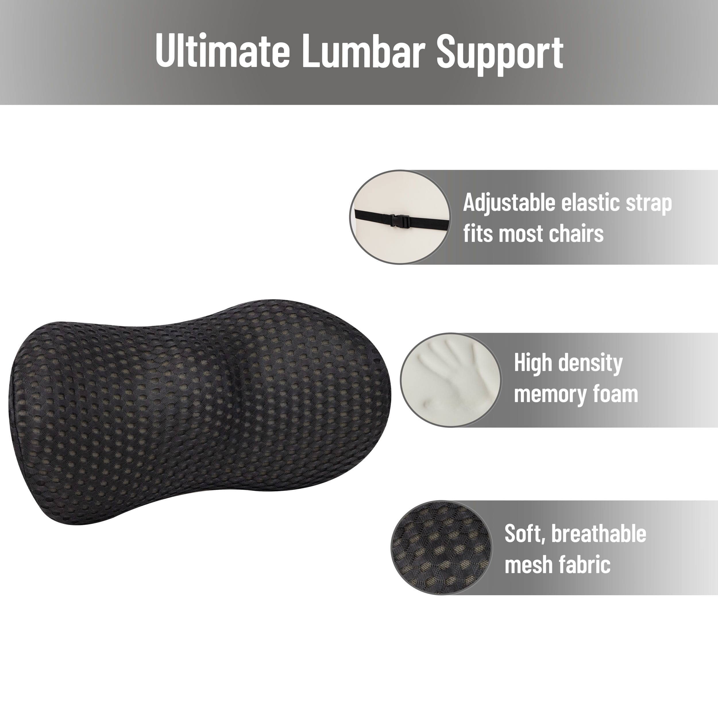 Mind Reader Lumbar Support Pillow with Air-Cloud Technology, Memory Foam Cushion for Back, Waist & Hip Pain Relief, Breathable Cover, Black