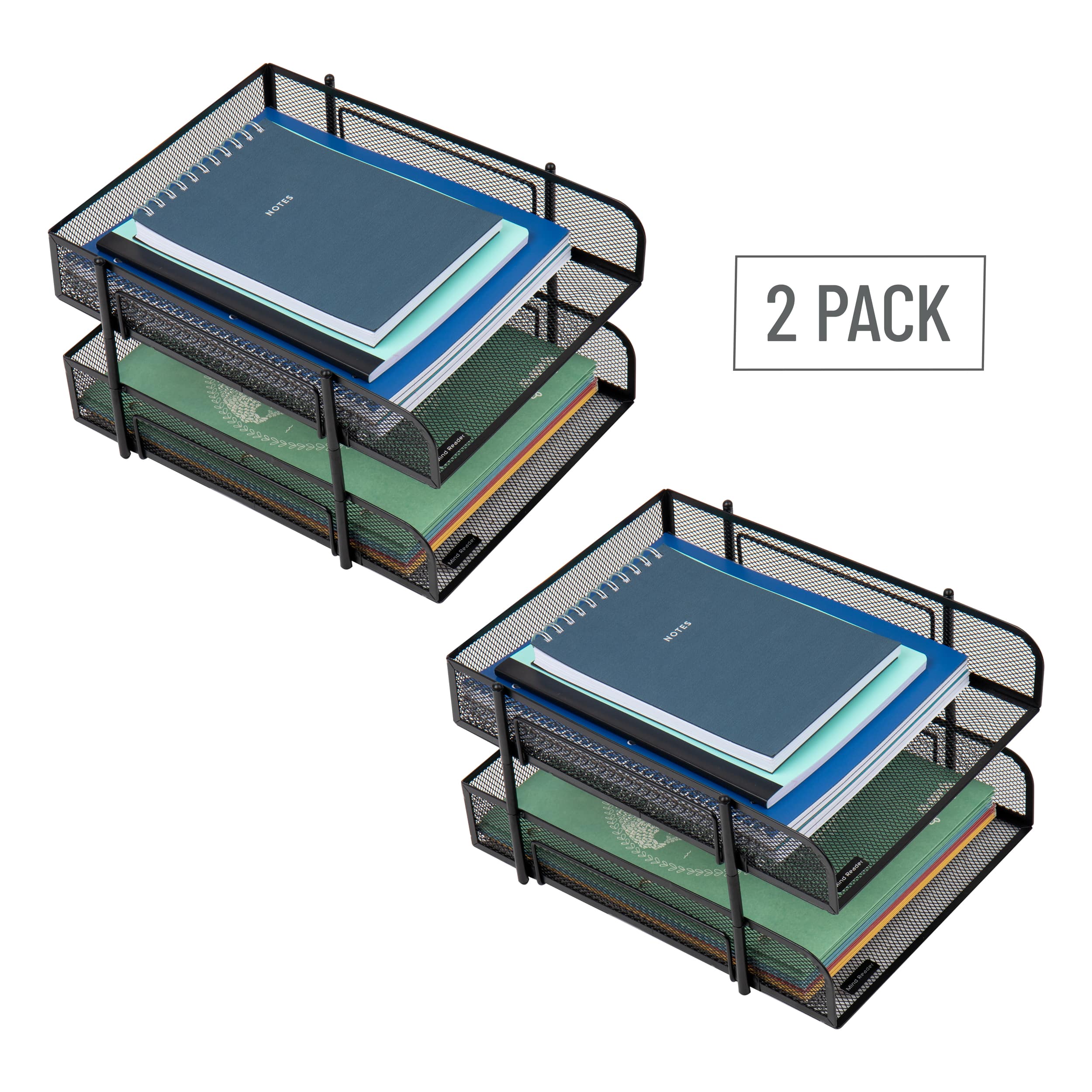 Mind Reader Network Collection Black Metal Mesh 2-Tier Letter Size Paper Trays, 2ct.