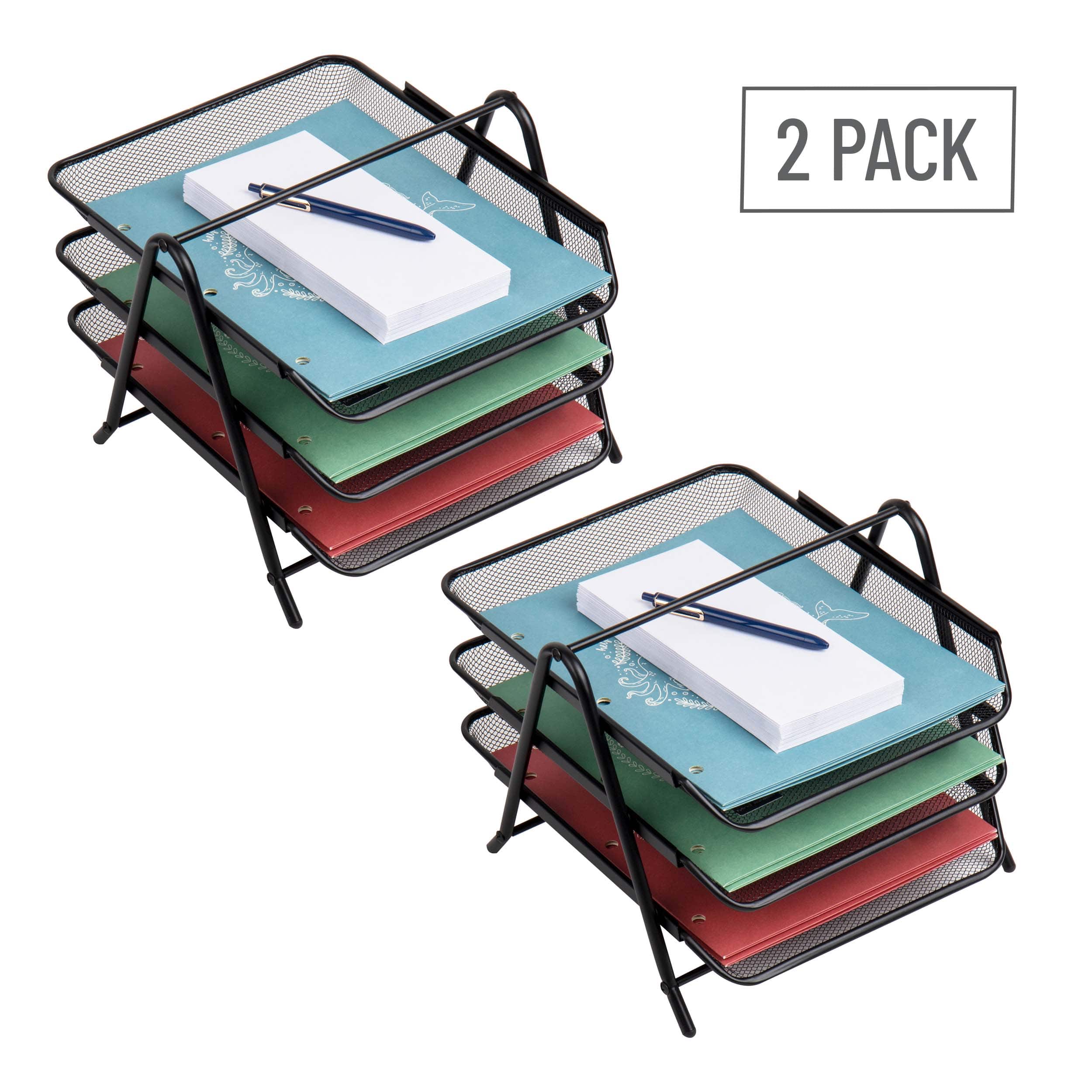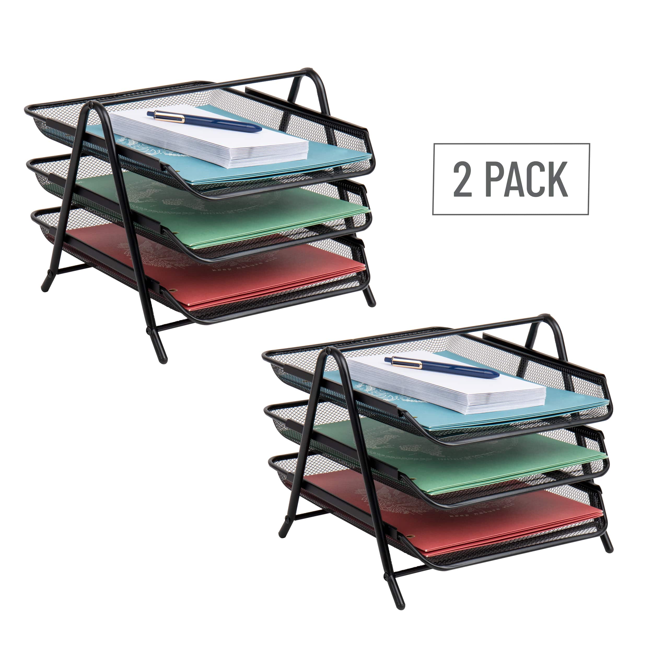 Mind Reader Network Collection Black Metal Mesh 3-Tier Paper Tray