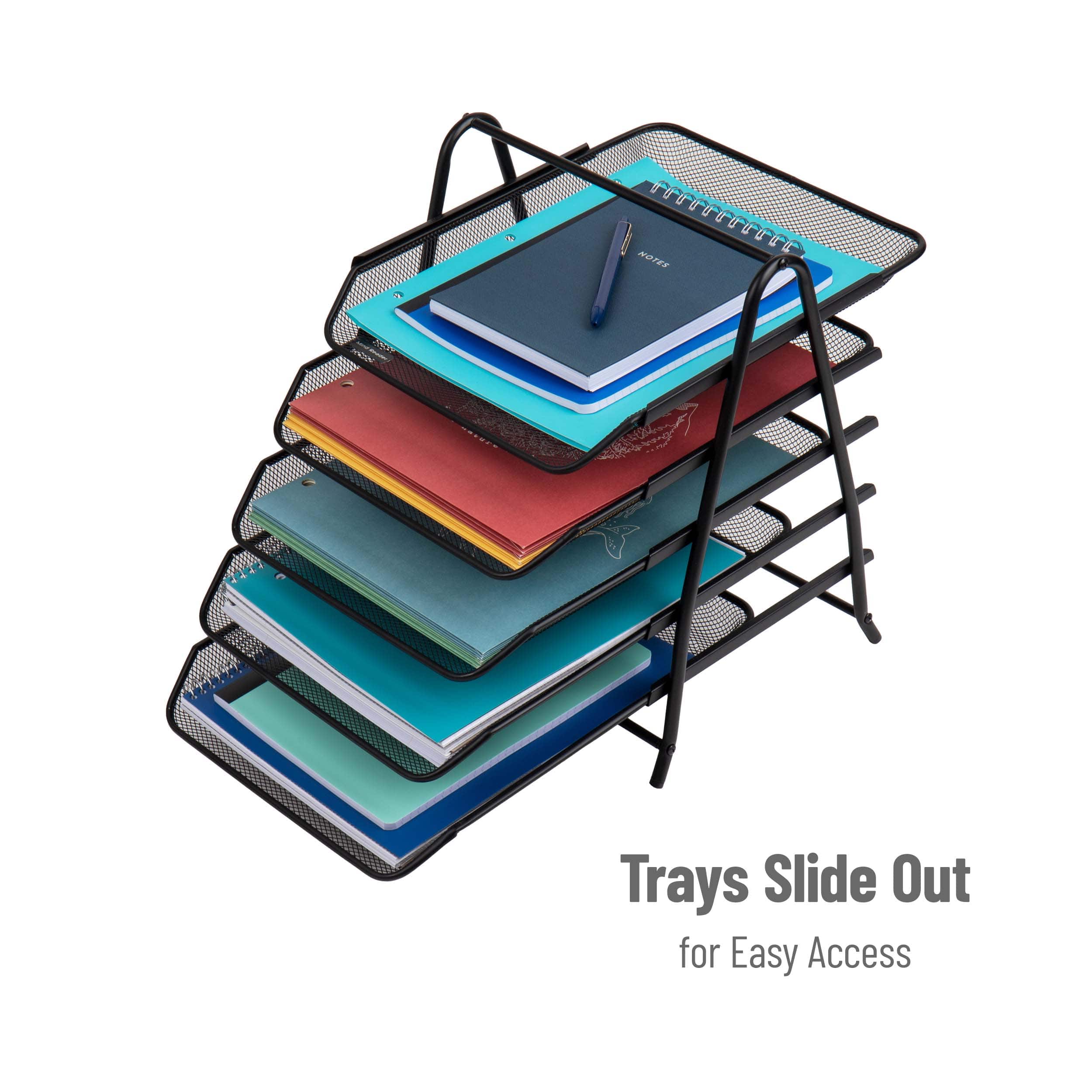 Mind Reader Network Collection Black Metal Mesh 5-Tier Paper Trays, 2ct.