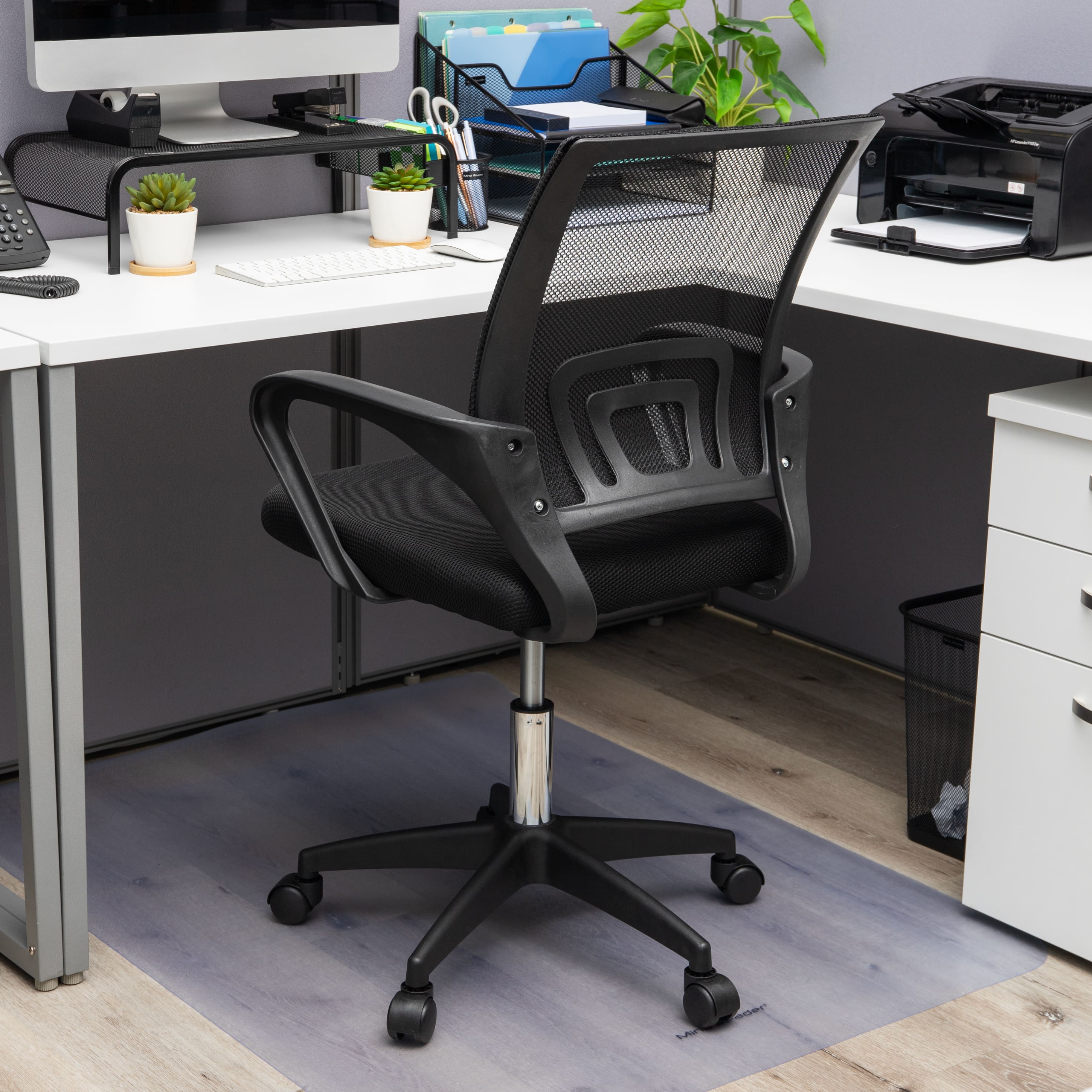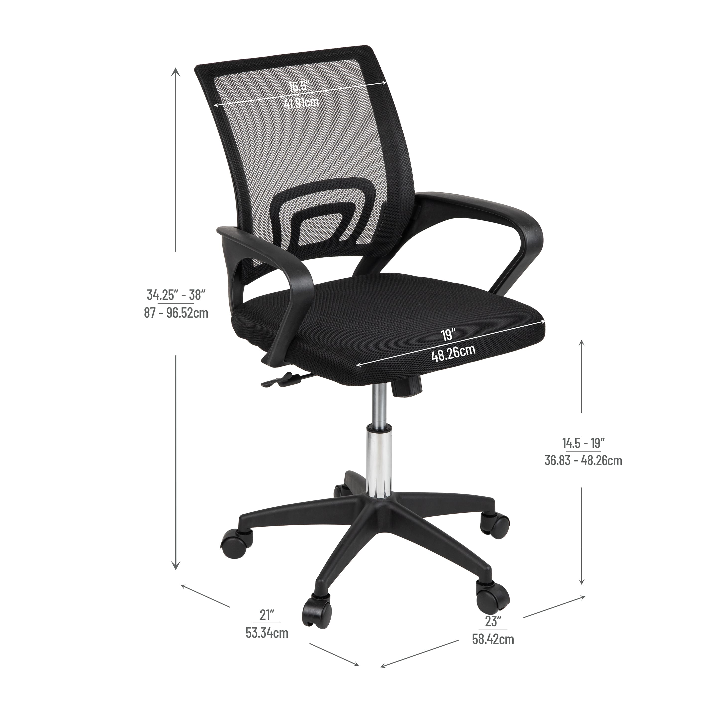 Mind Reader Office Chair with Wheels, Height Adjustable, Desk Chair, Office, 23"L x 21"W x 34.25-38"H, Black