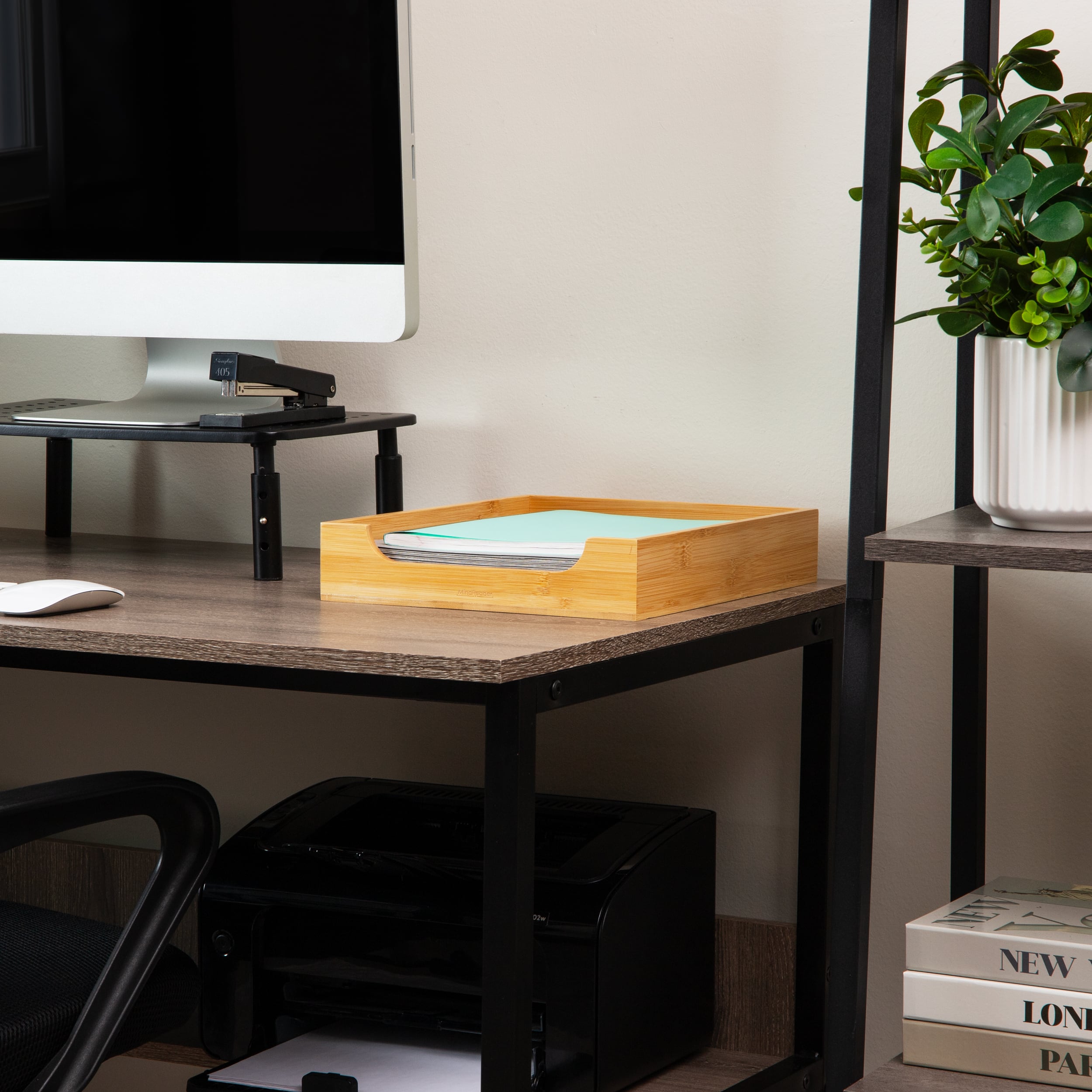 Mind Reader Paper Tray, Desktop Organizer, File Storage, Modern, Office, Bamboo, Brown