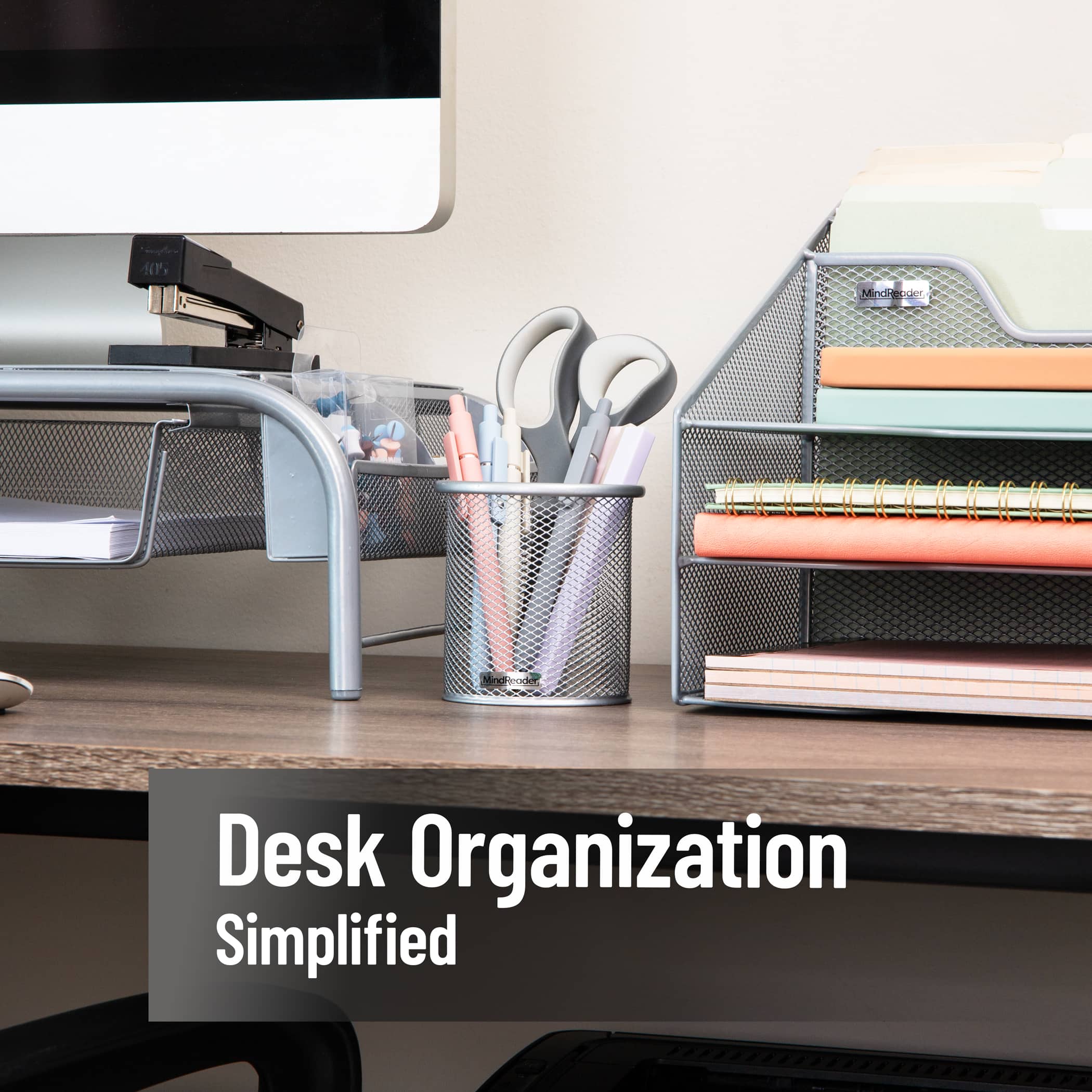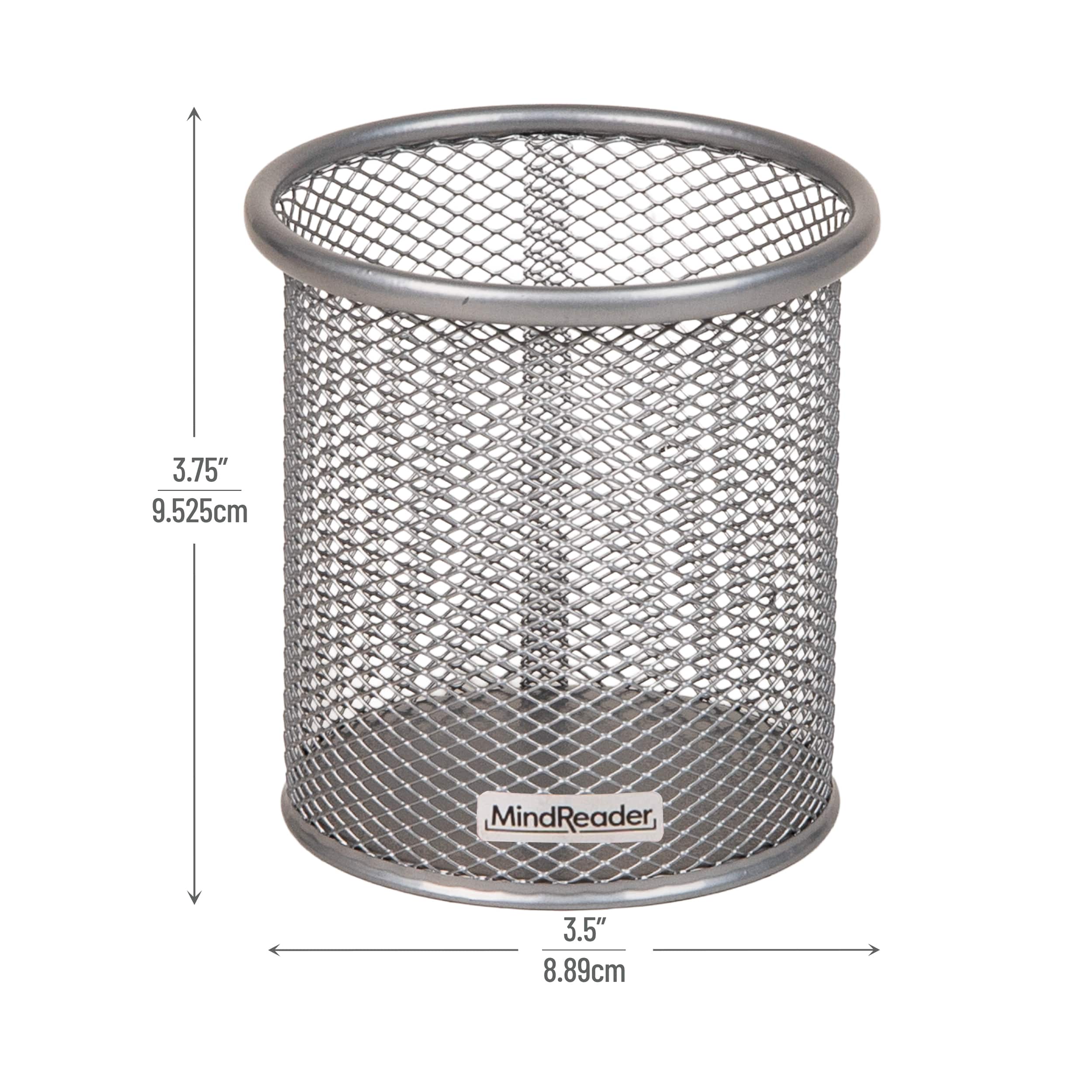 Mind Reader Pen and Accessories Holder, Desktop Organizer, Office, Metal Mesh, Set of 3, Silver