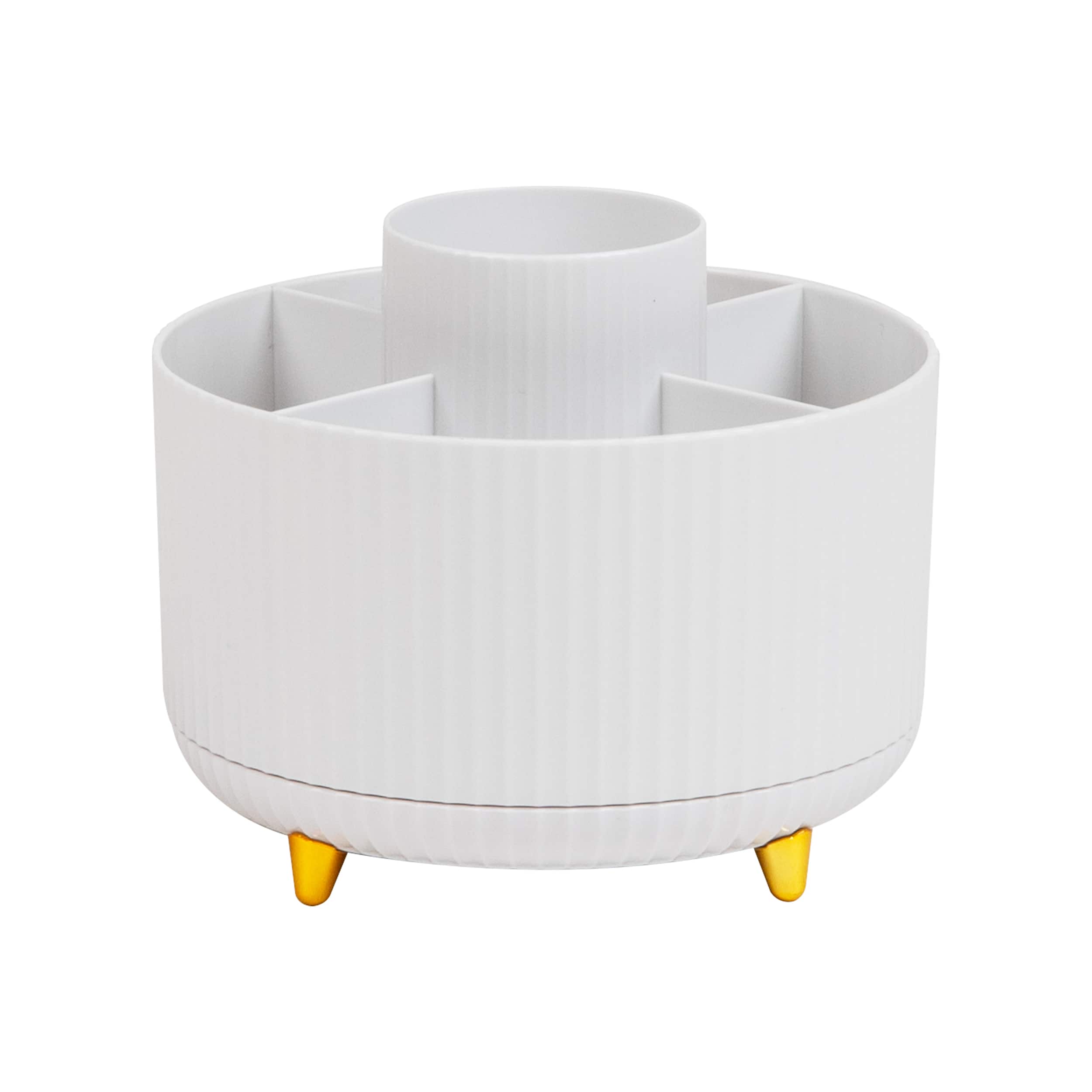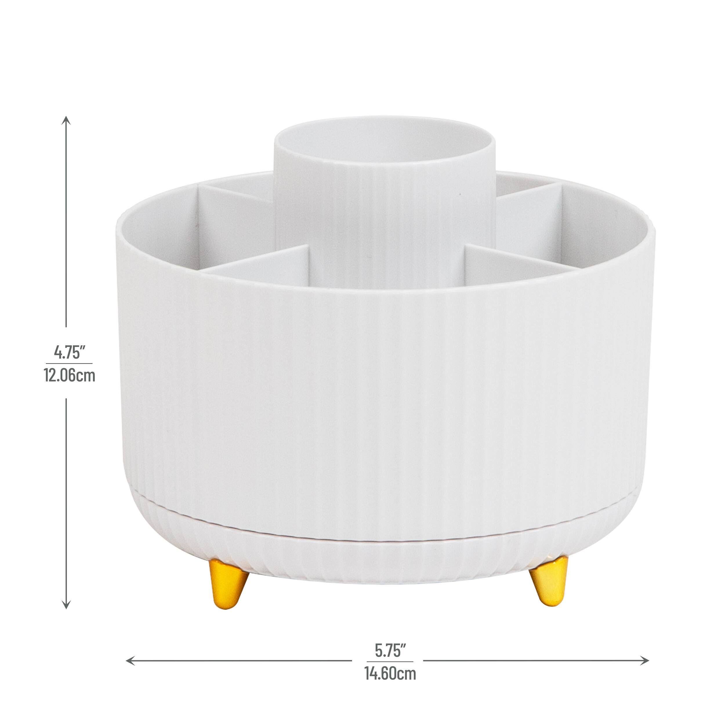 Mind Reader Rotating Pen Cup, 5-Compartment Accessory Holder for Desk Supplies, White