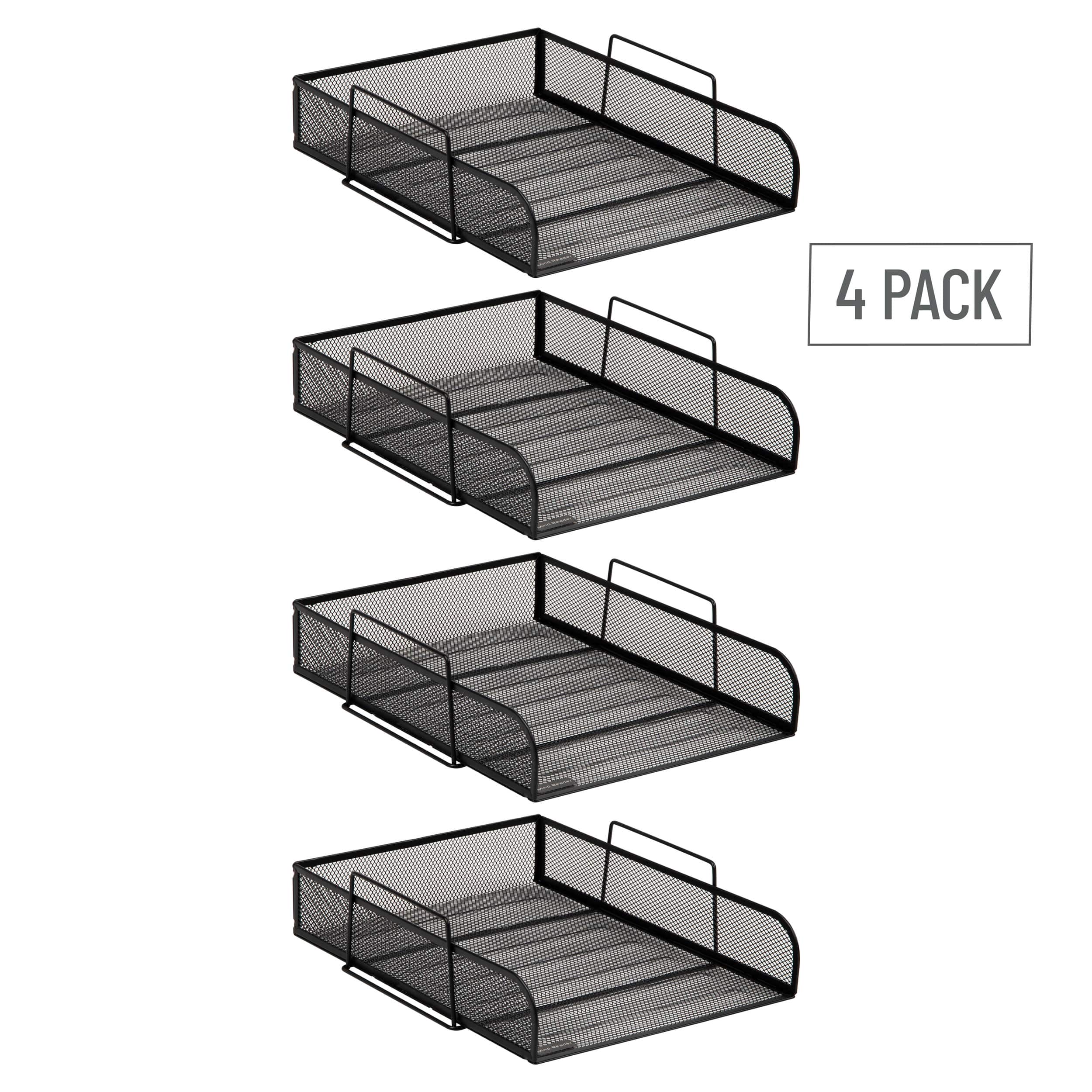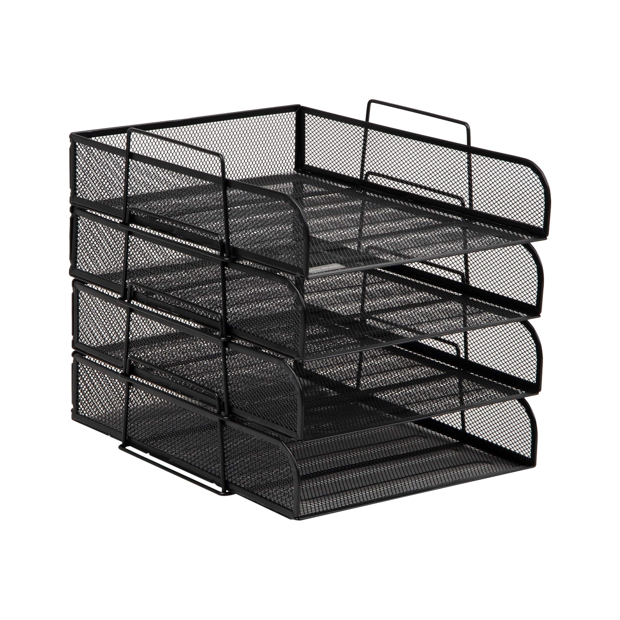 Mind Reader Stackable Paper Tray, Desktop Organizer, File Storage, Office, Metal Mesh, 10.5"L x 13.5"W x 11.25"H, 4 Pcs., Black