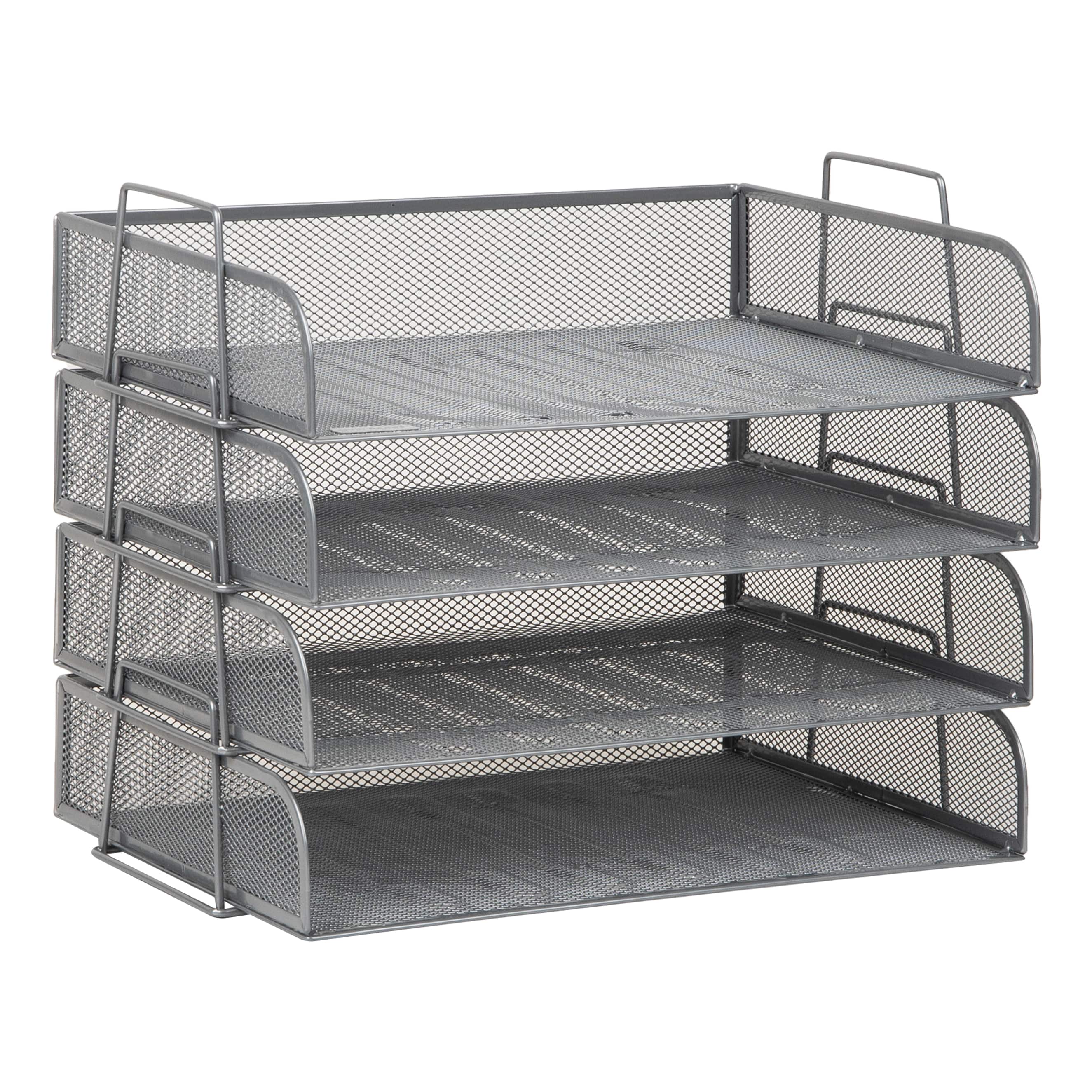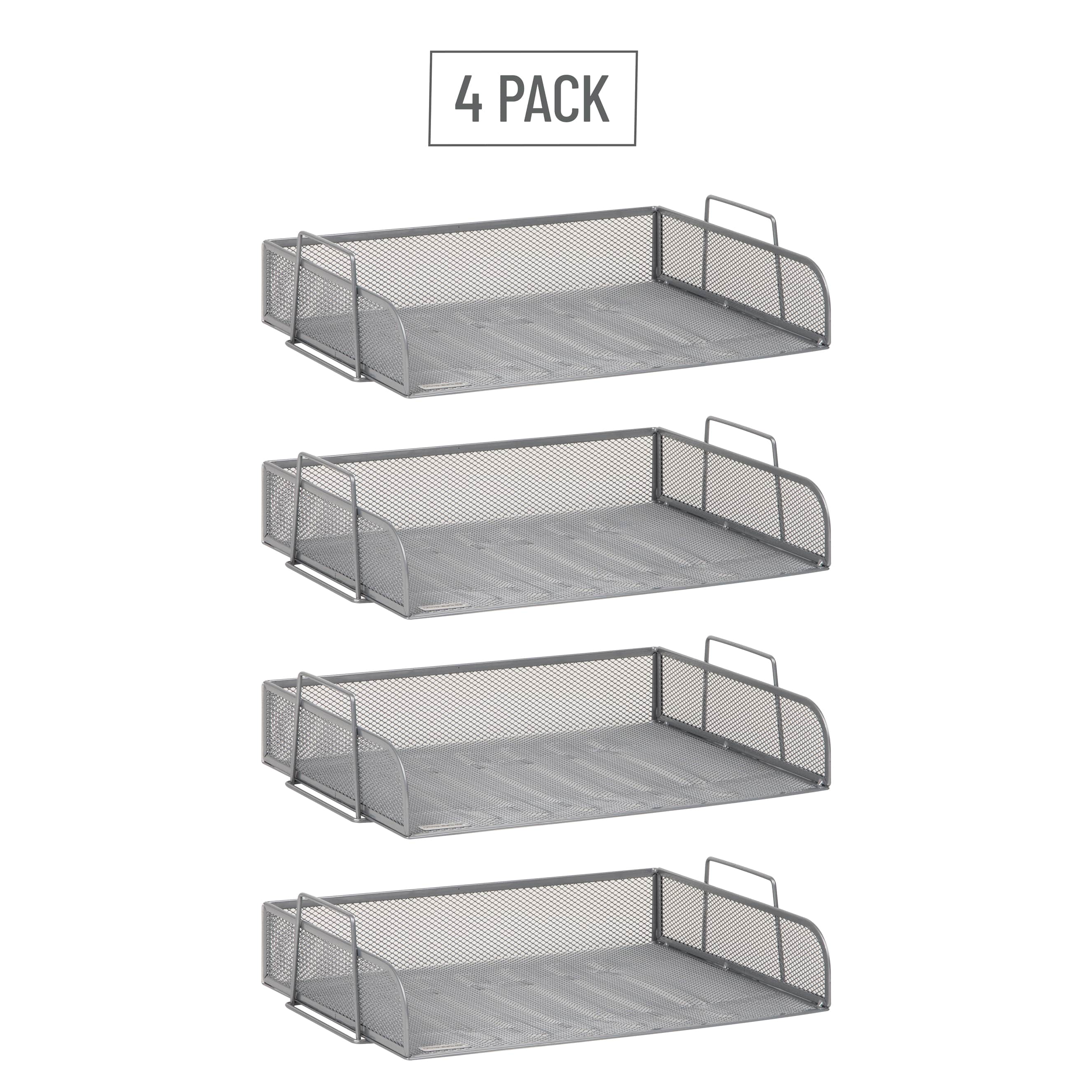 Mind Reader Stackable Paper Tray, Desktop Organizer, File Storage, Office, Metal Mesh, 4 Pcs., Silver