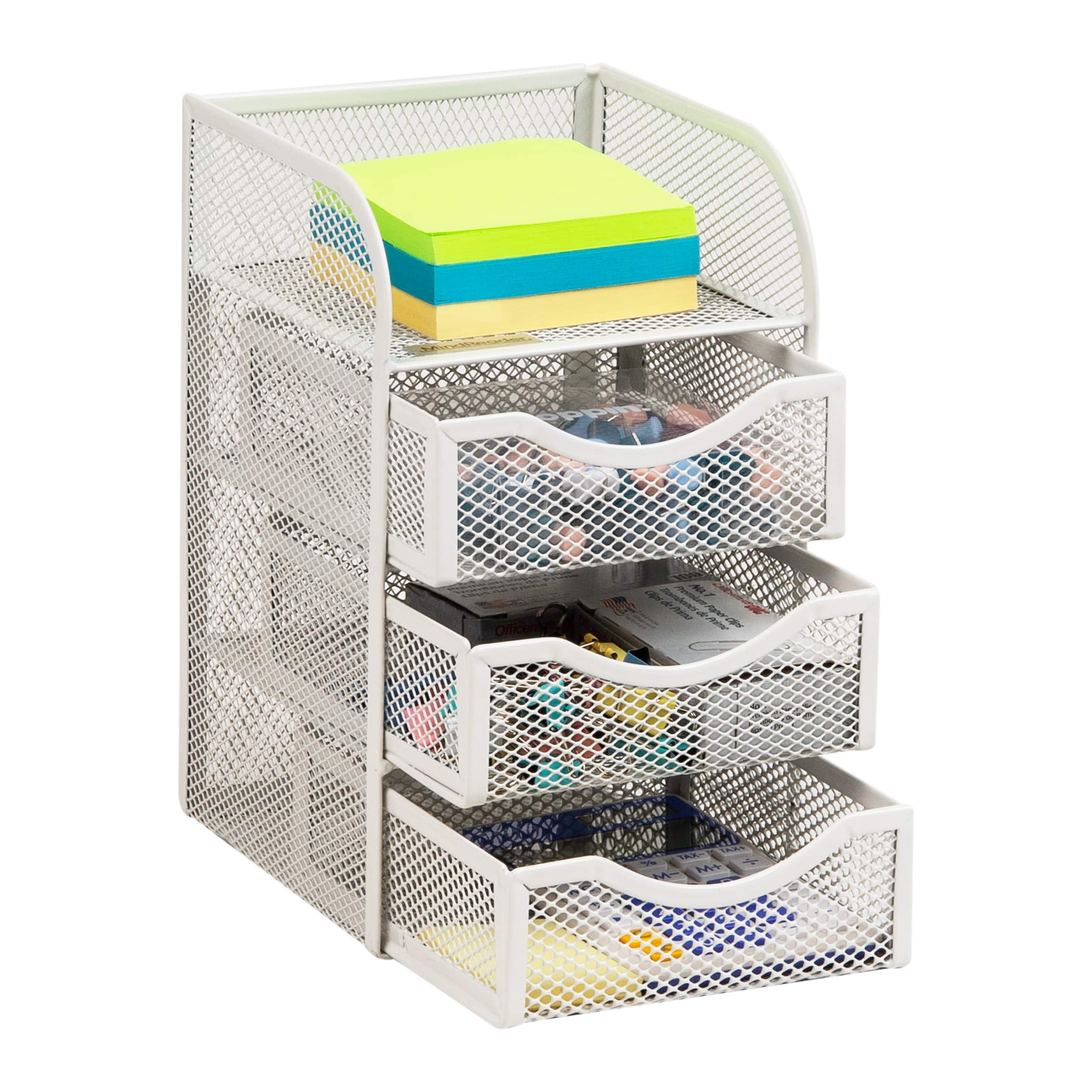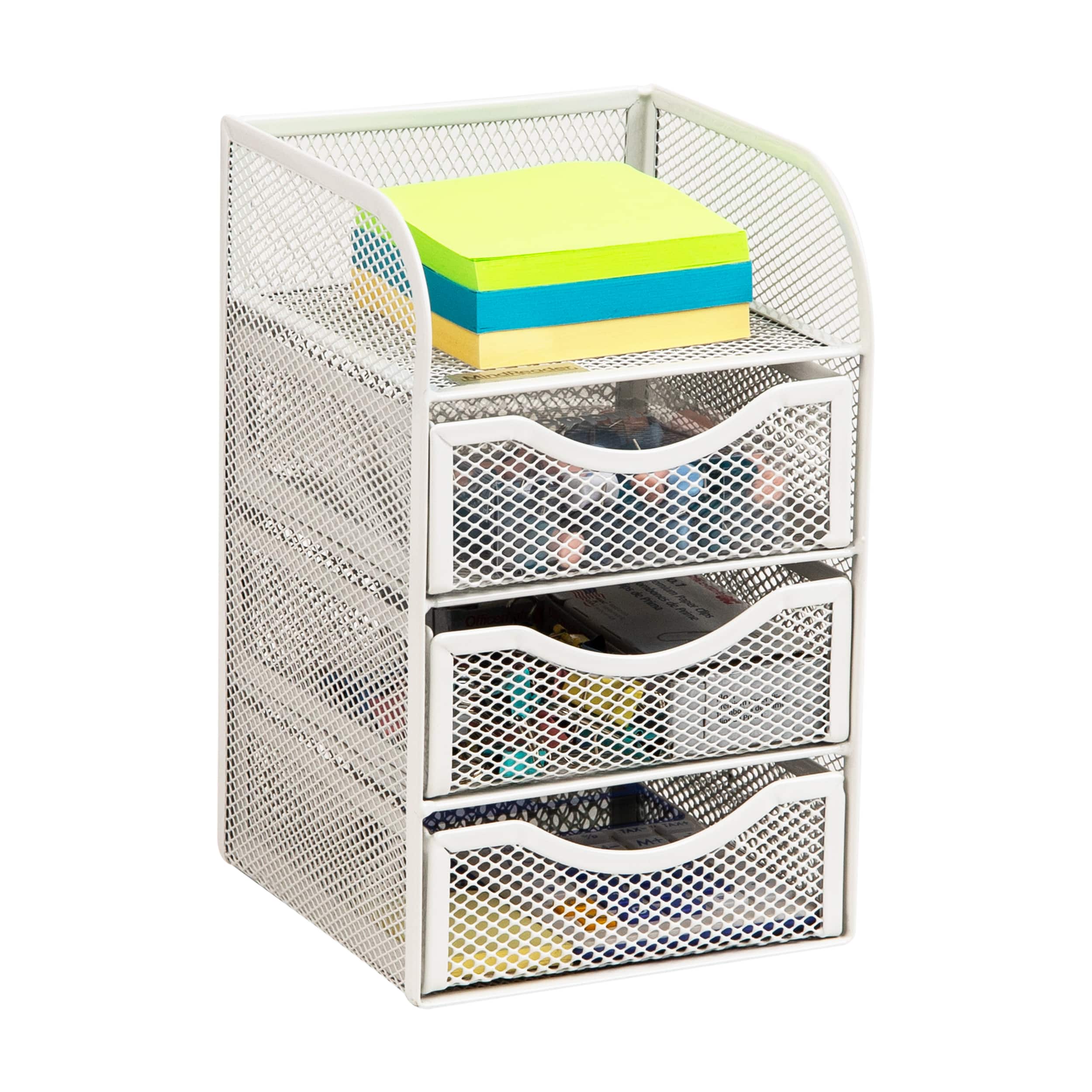 Mind Reader White 3 Drawers Mini Desk Office Supplies Organizer
