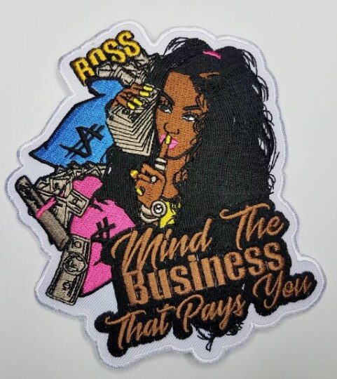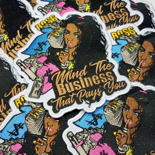 "Mind the Business That Pays You, Embroidered Patch, Iron-on Patch, Applique for Clothing, size 5" inches