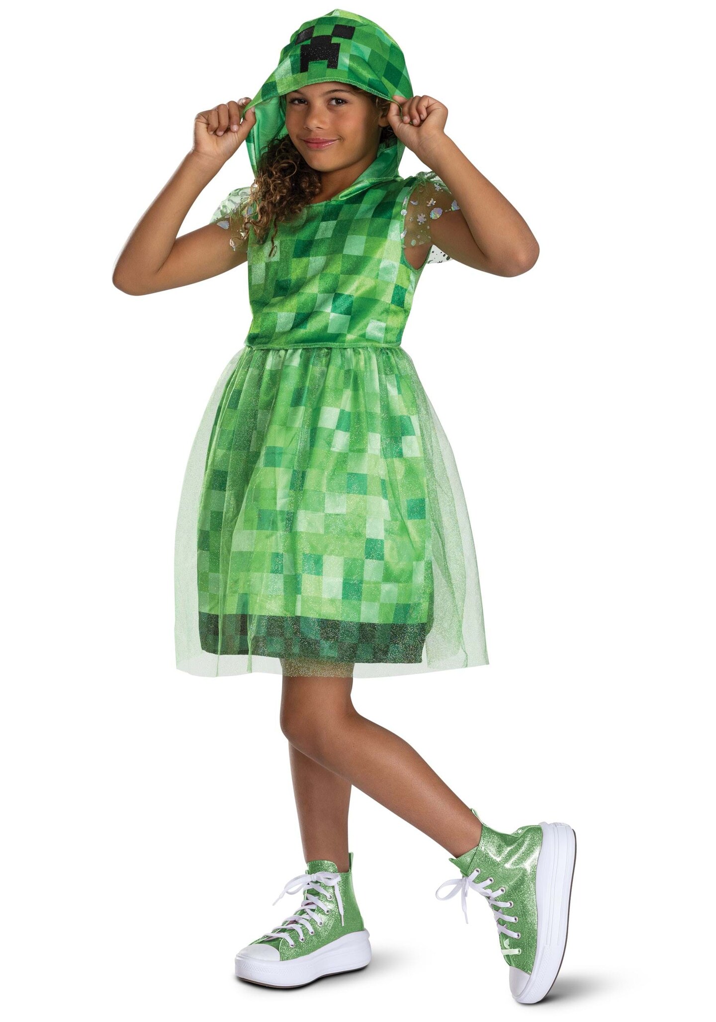 Minecraft Creeper Girl's Hooded Costume Dress