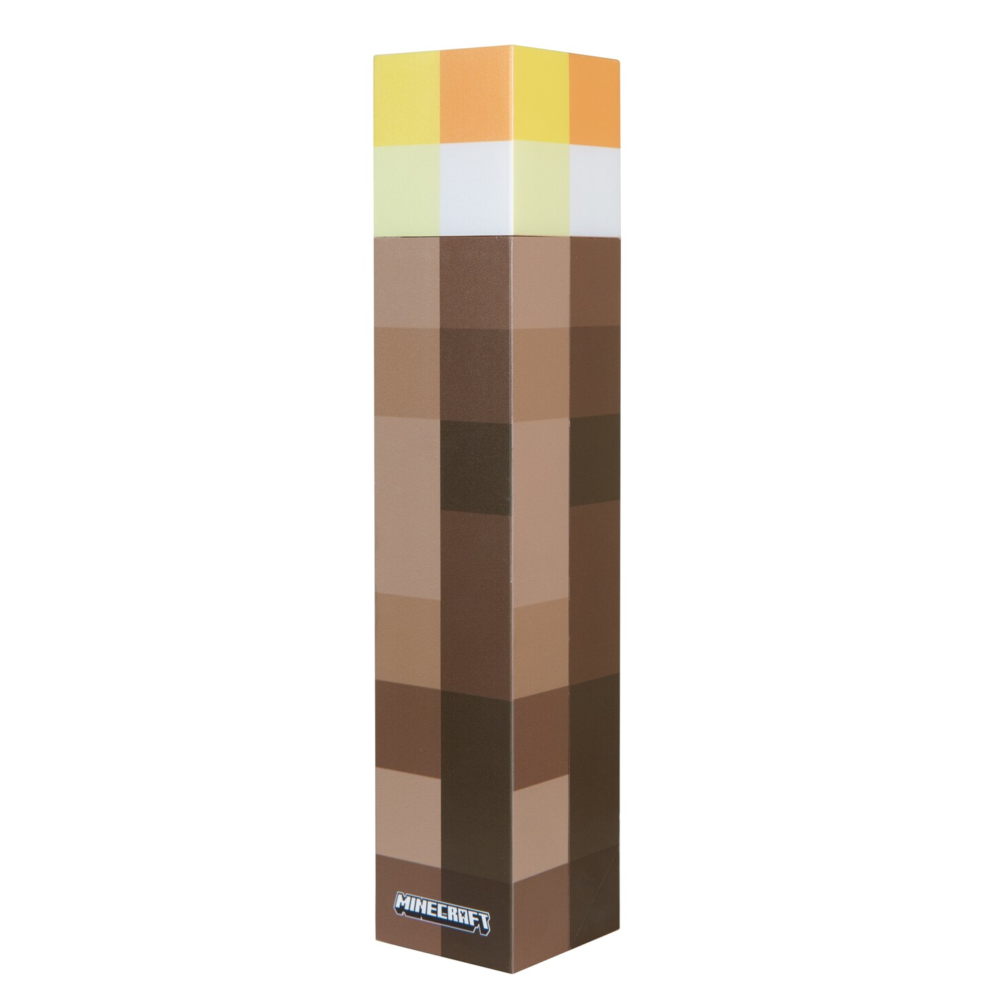 Minecraft: LED Torch - 11" Brownstone Pixels Torch Replica, 4 Light Options, Wall-Table Mounting, USB Charging, Game Themed Night Light Lamp, Licensed