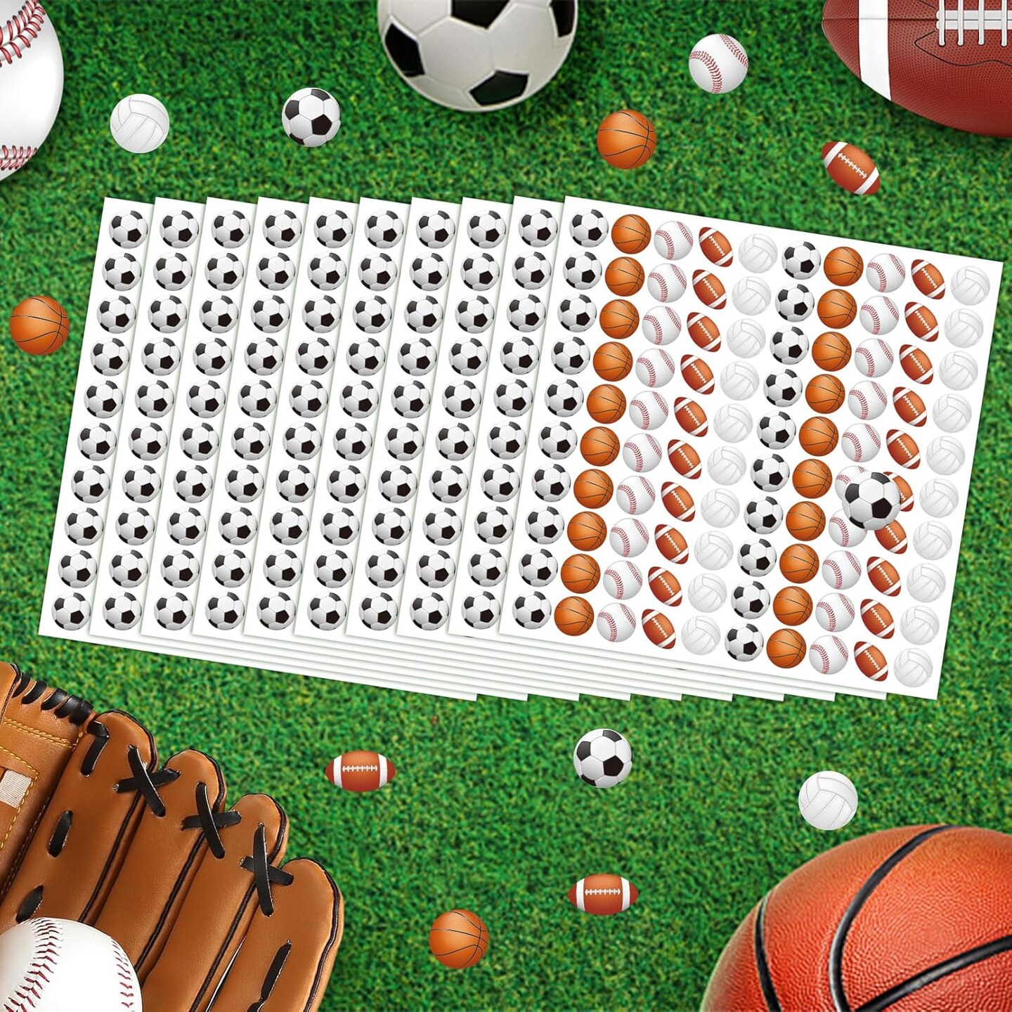 Mini 1000 Pcs Sports Ball Stickers for Kids Soccer, Football, Baseball, Basketball, Volleyball Stickers for Kids Ball Themed Party Birthday Classroom Decorations