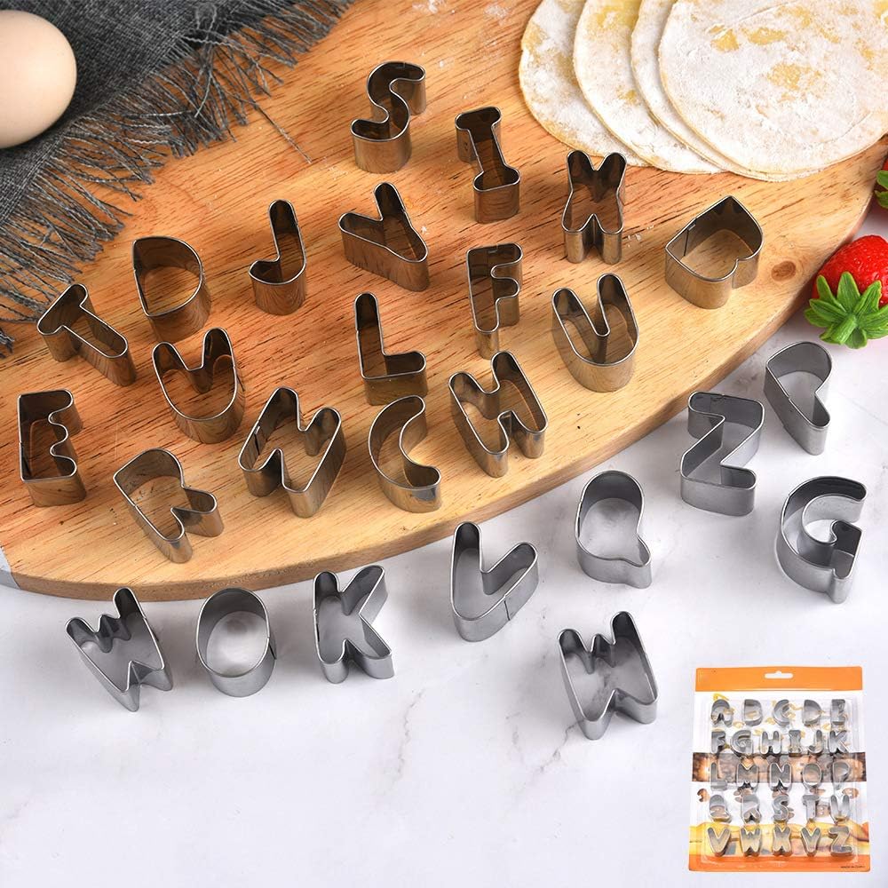 Mini Alphabet & Number Cookie Cutter Set Stainless Steel 36 Pieces