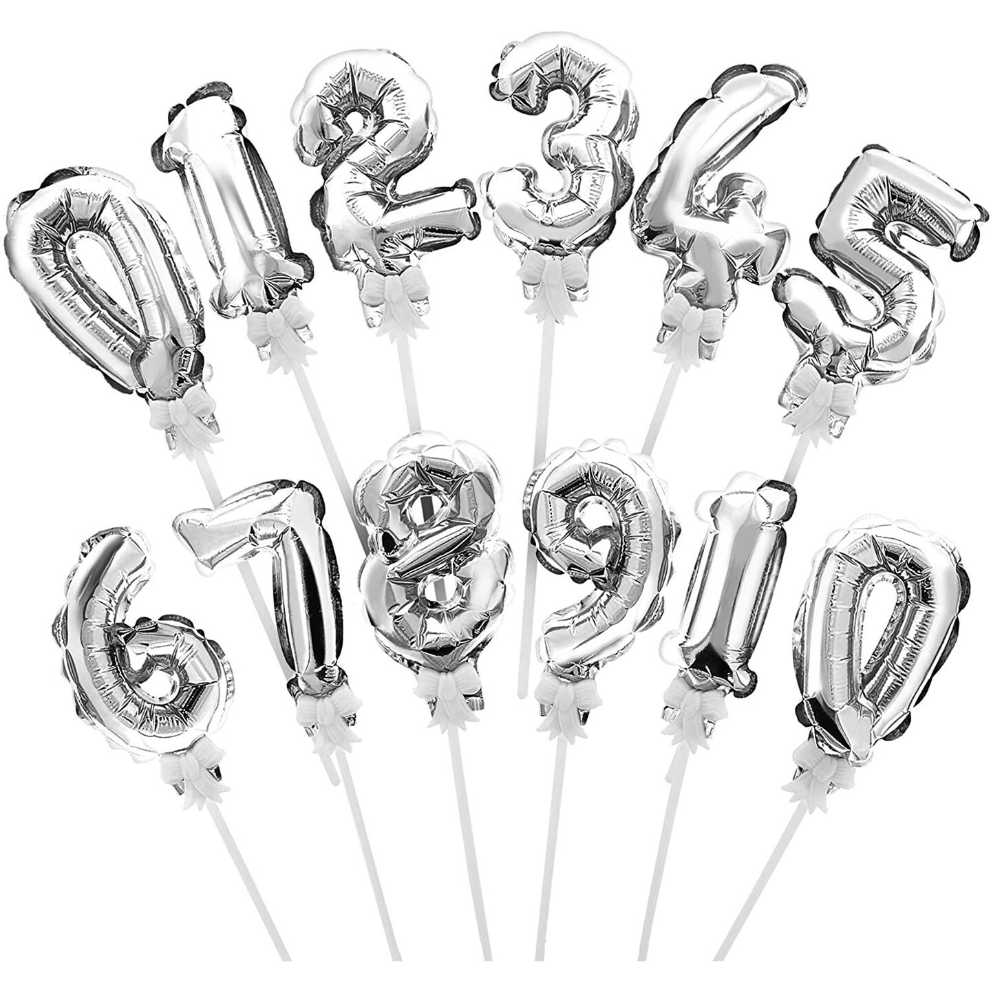 Mini Cake Topper Number Balloons, Birthday Party Decor, Metallic Silver (5.5 In, 12 Pack)